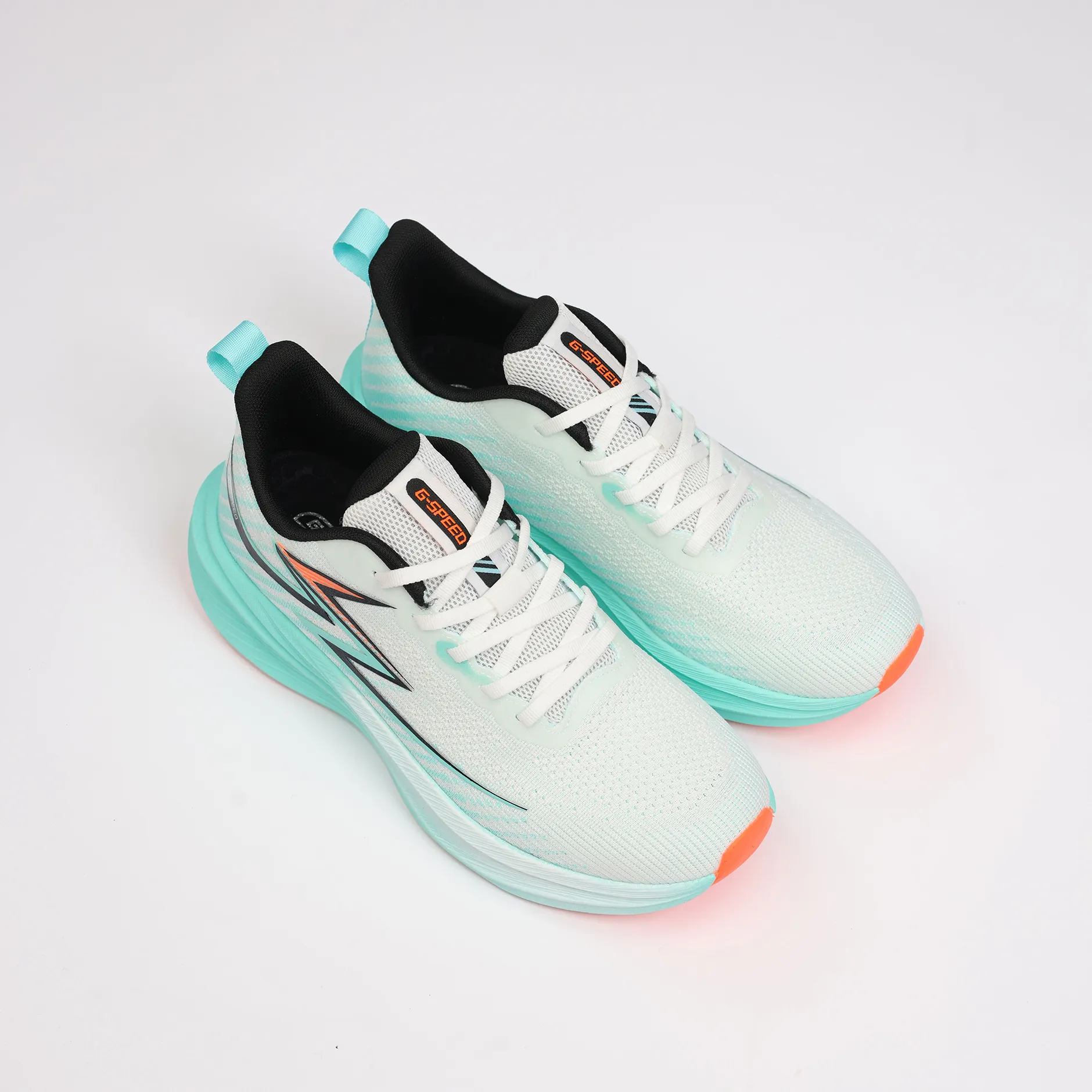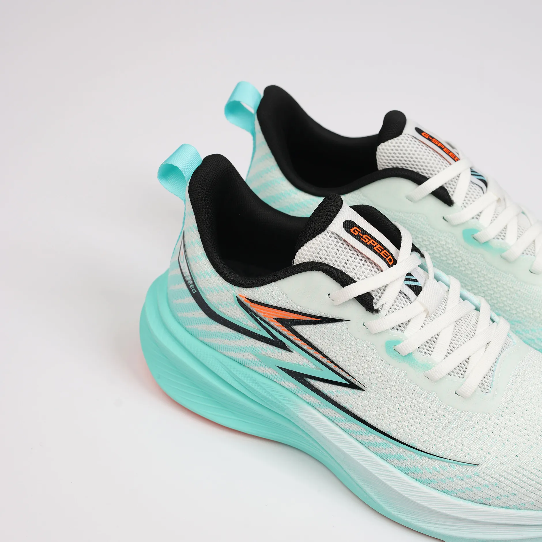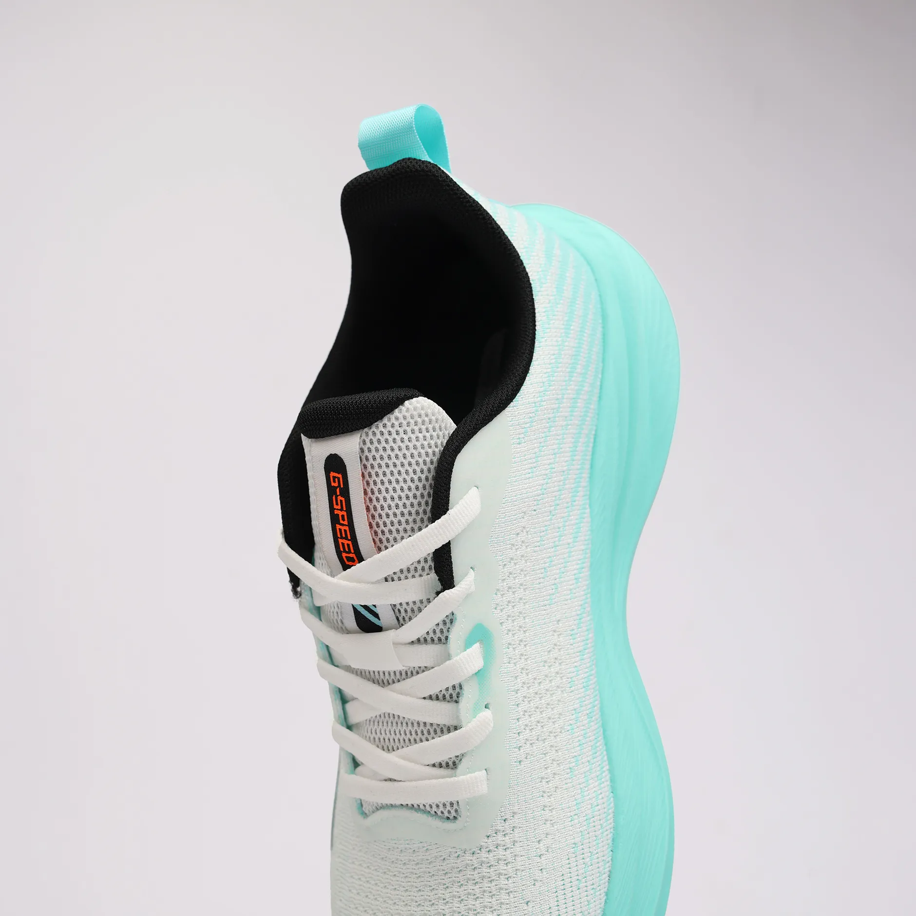 La GSpeed AeroBolt 220 – Aqua Pulse associe un mesh mint ultra-léger à des accents corail pour un look vibrant et sportif. Sa construction respirante offre un maintien précis tout en gardant le pied au frais, même lors de longues journées en mouvement.