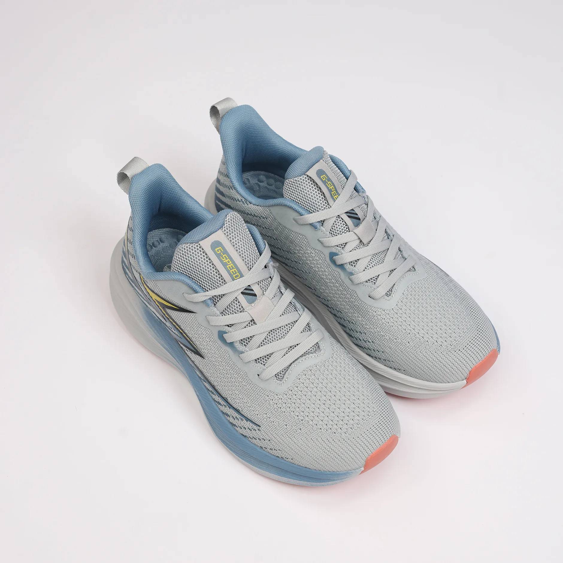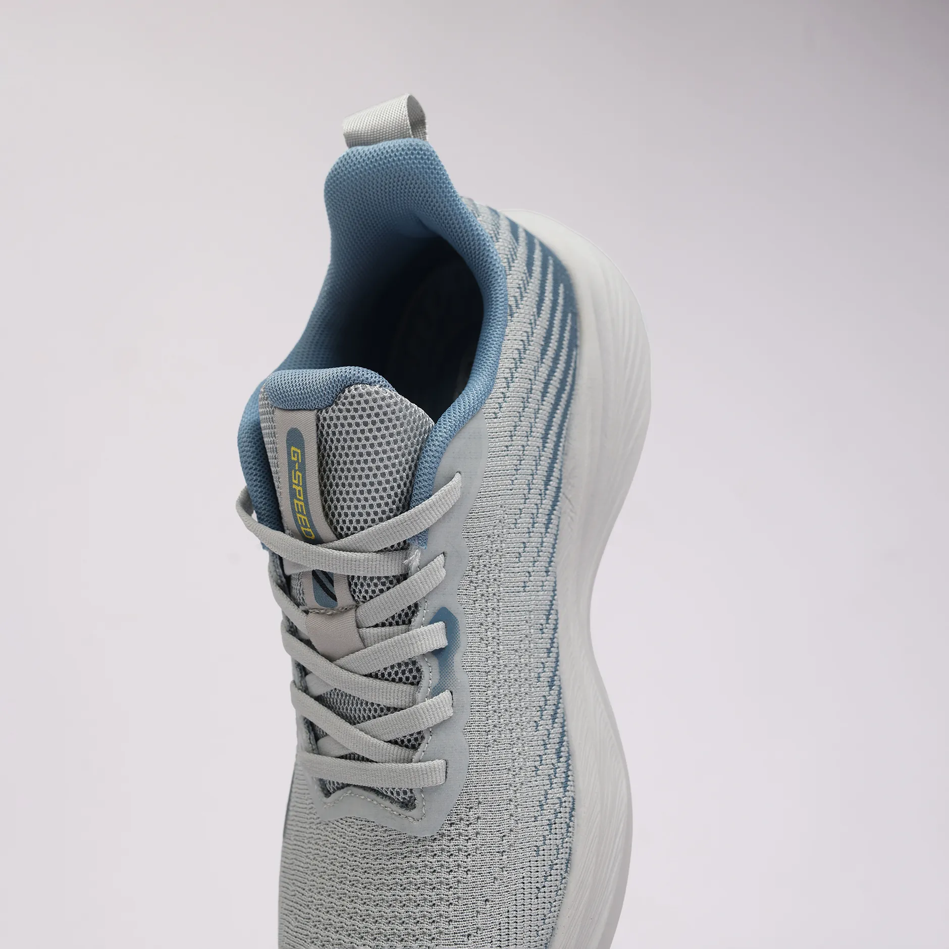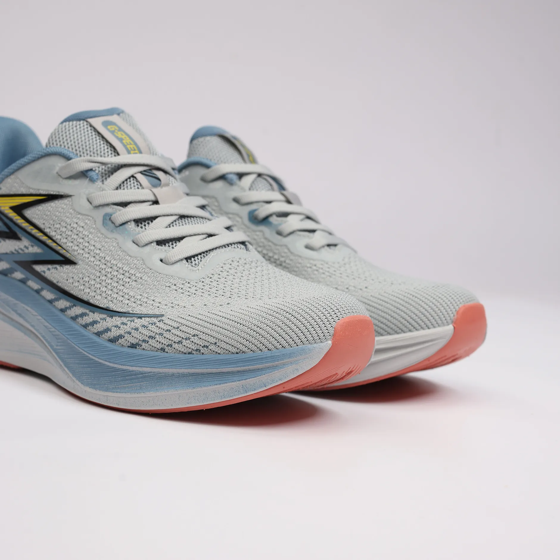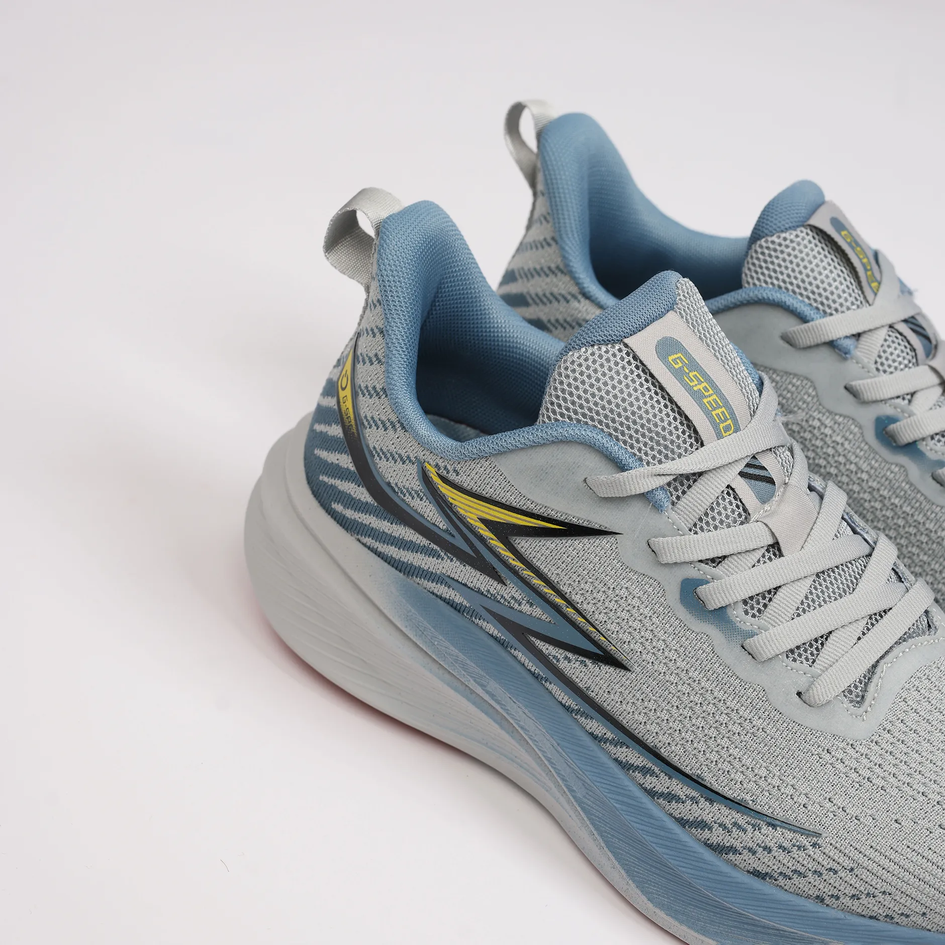 La GSpeed AeroBolt 220 – Glacier Spark se distingue par une palette froide inspirée des teintes polaires. Sa tige en mesh gris assure légèreté et respirabilité, tandis que les touches bleu glacier apportent une touche visuelle moderne et élégante.