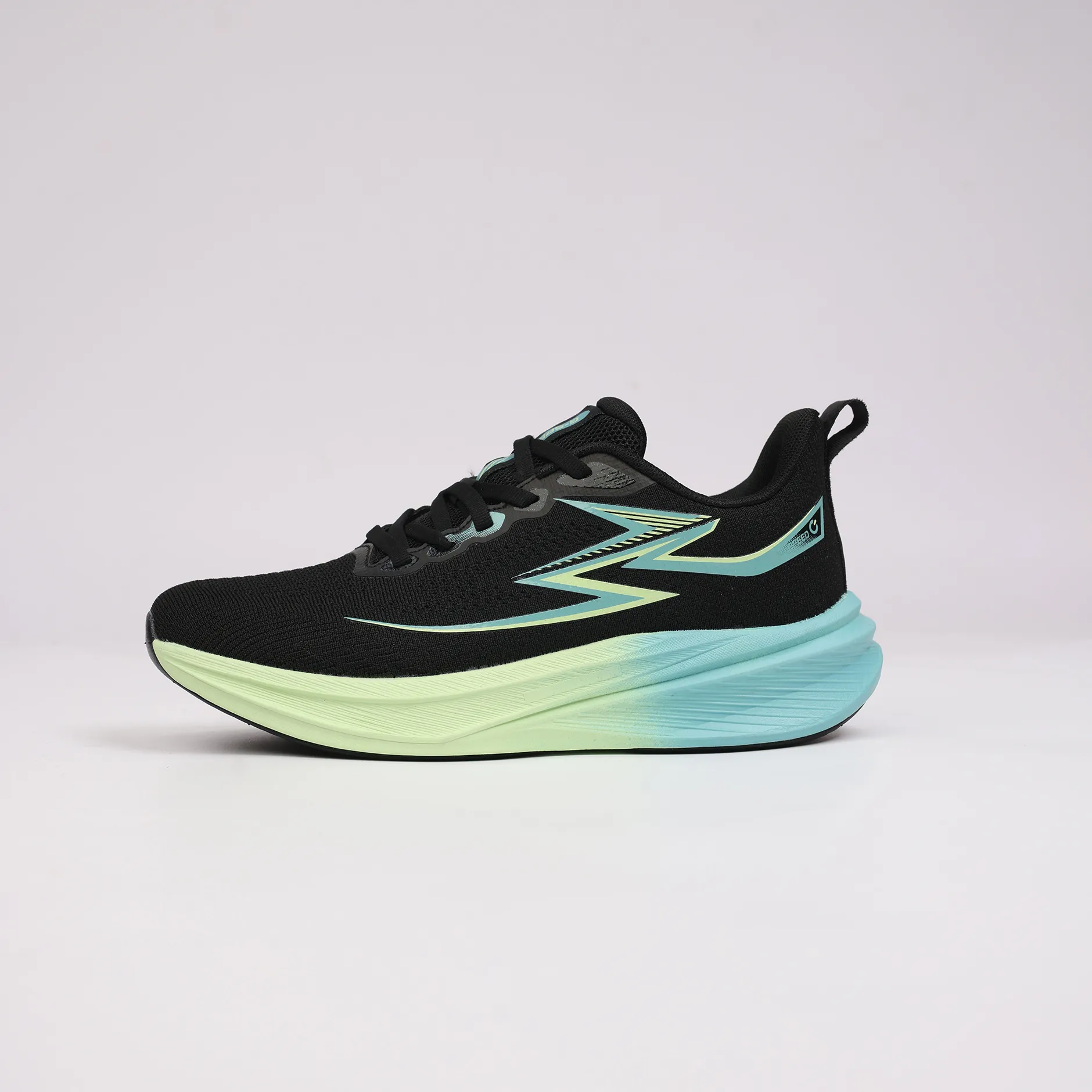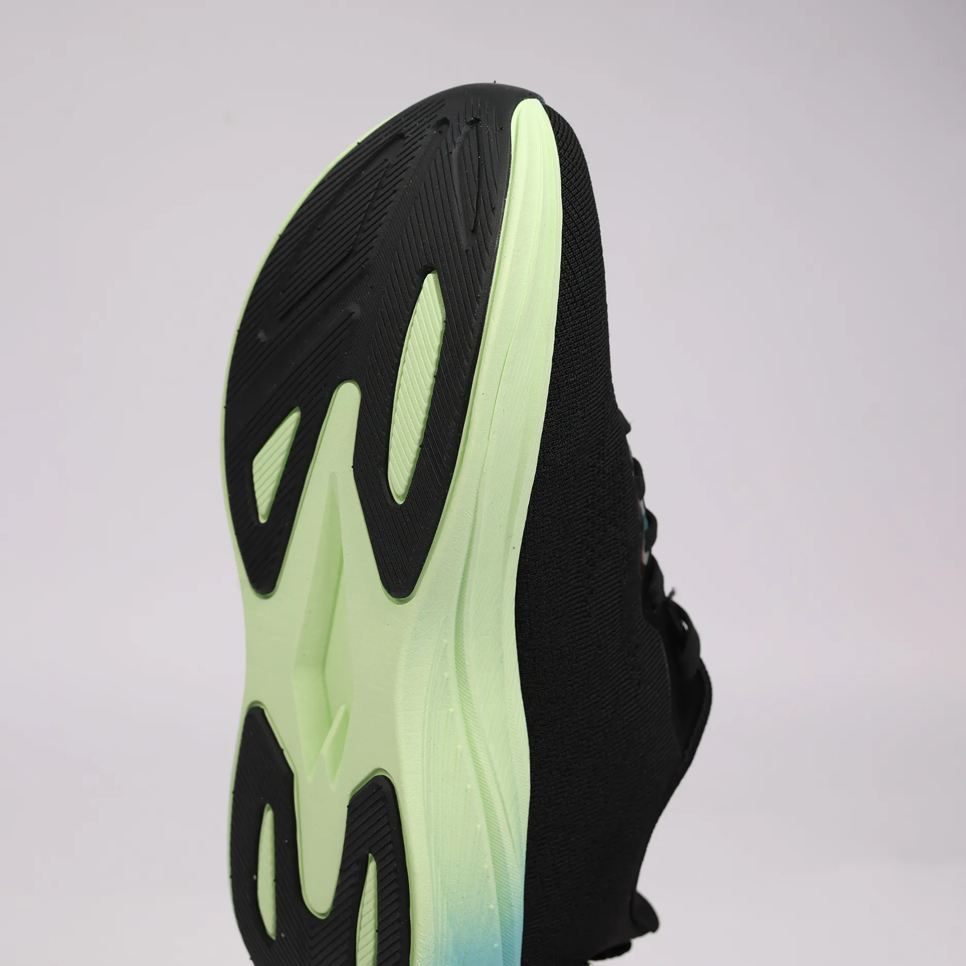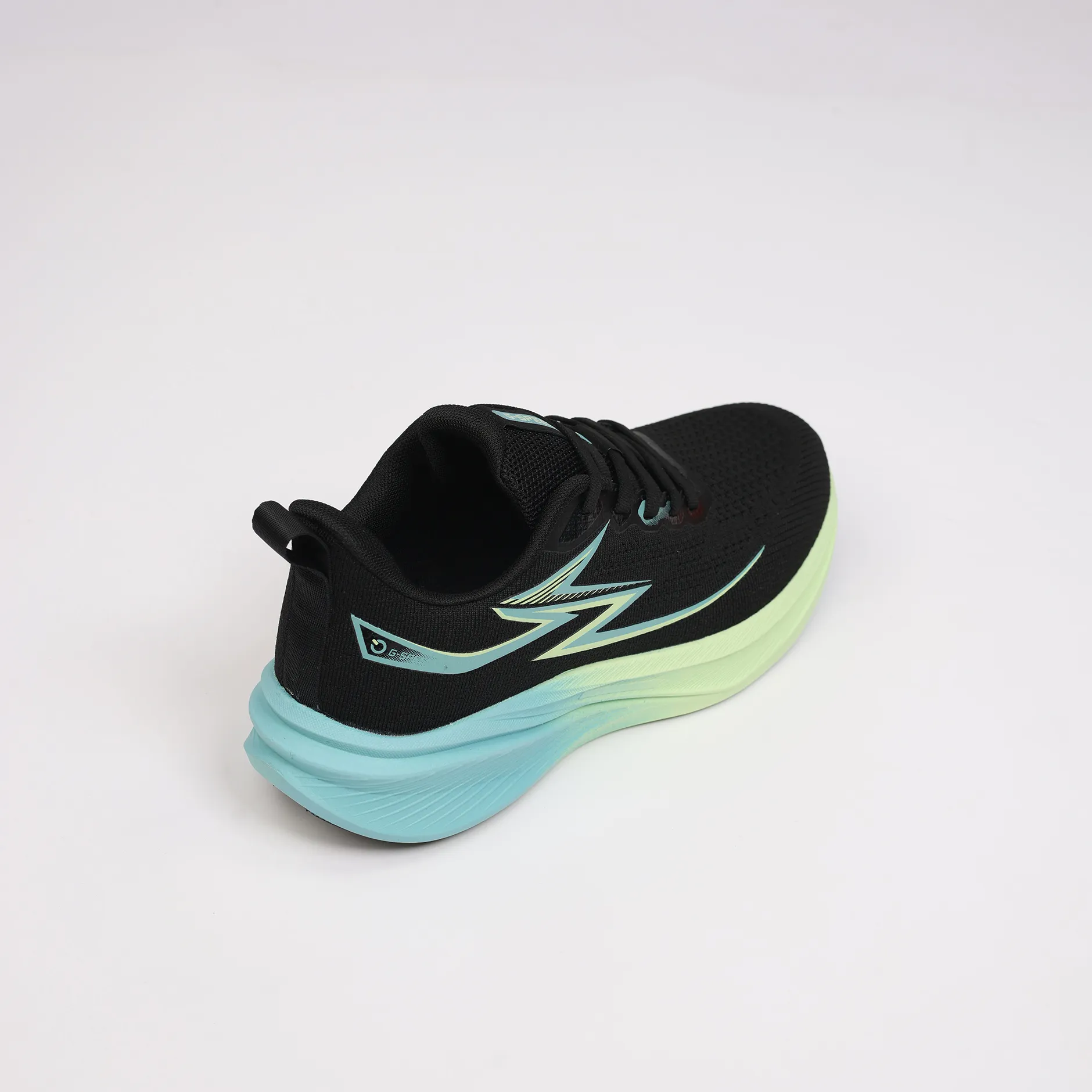 La GSpeed AeroBolt – Neon Breeze mise sur un contraste moderne entre le noir profond et le vert mentholé. Sa tige technique assure une ventilation continue, combinant légèreté et maintien.