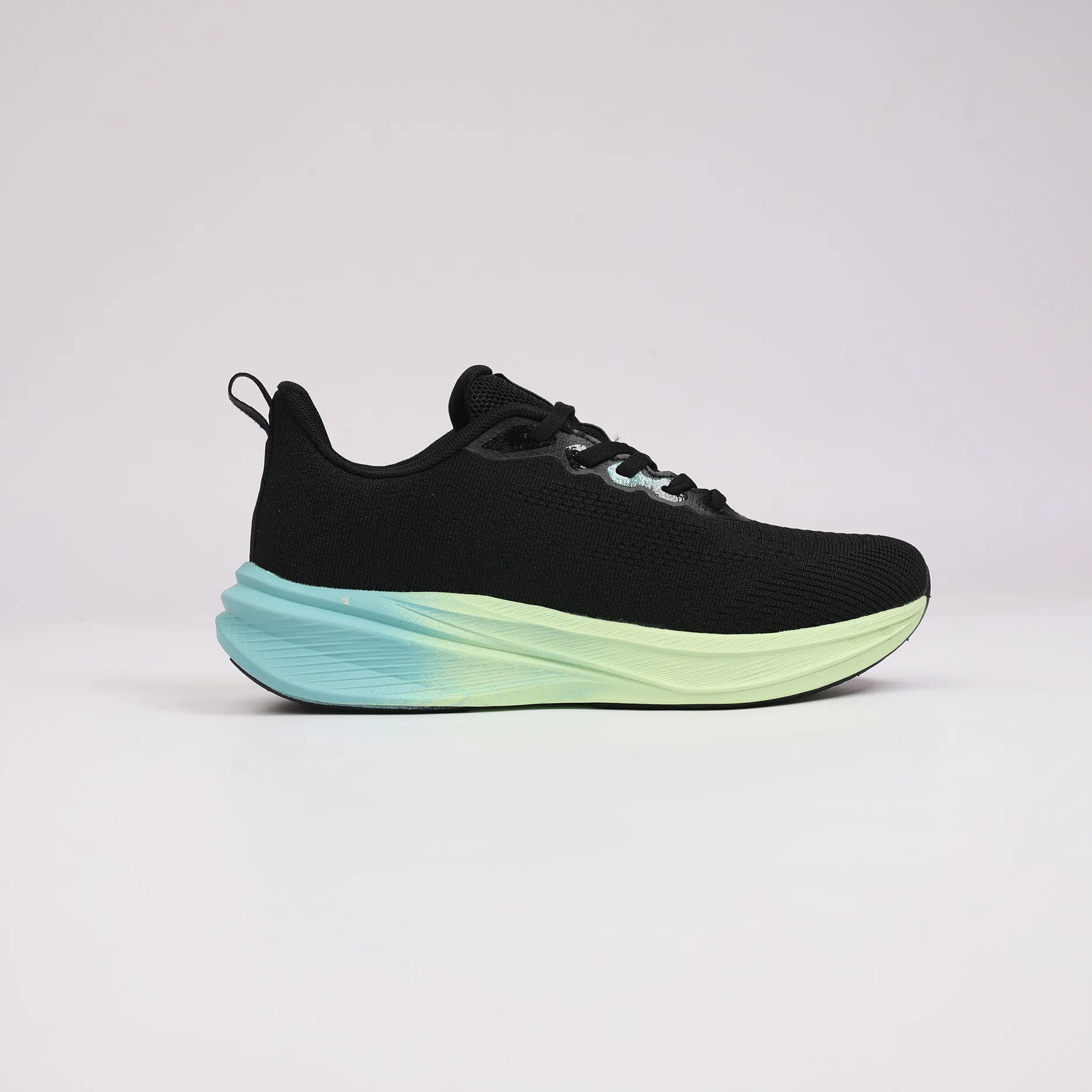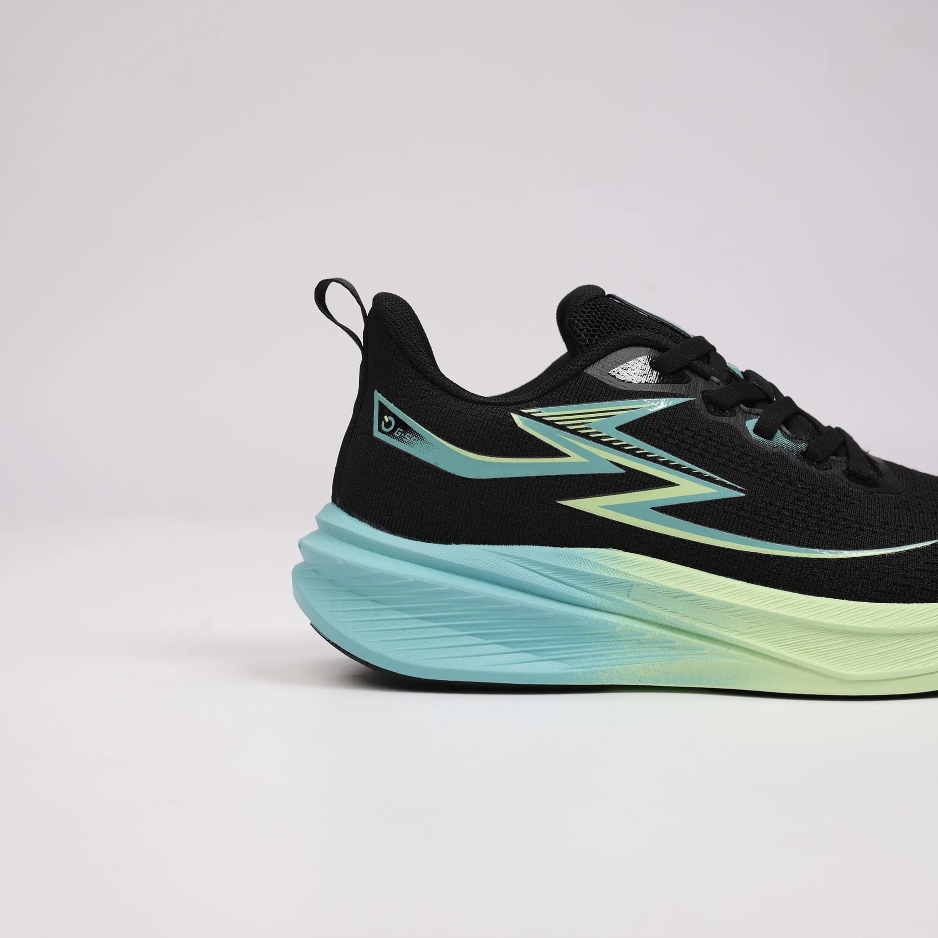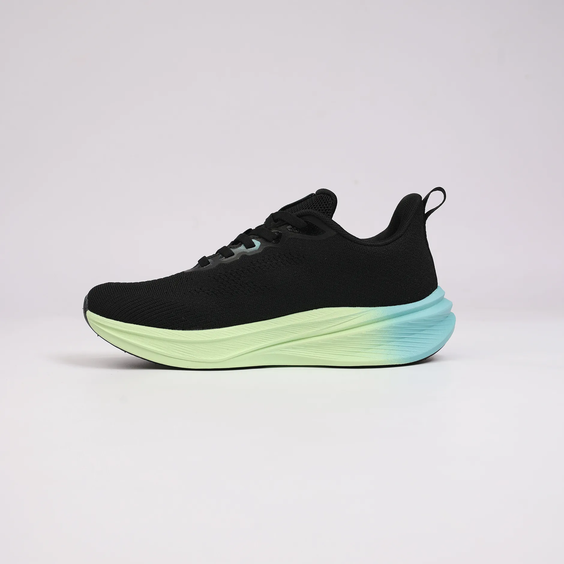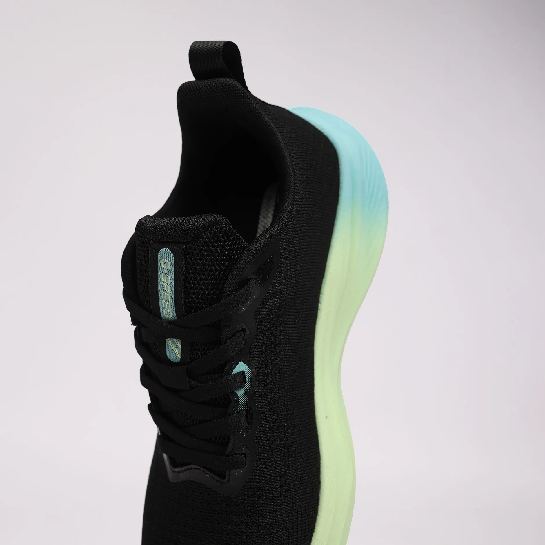 La GSpeed AeroBolt – Neon Breeze mise sur un contraste moderne entre le noir profond et le vert mentholé. Sa tige technique assure une ventilation continue, combinant légèreté et maintien.