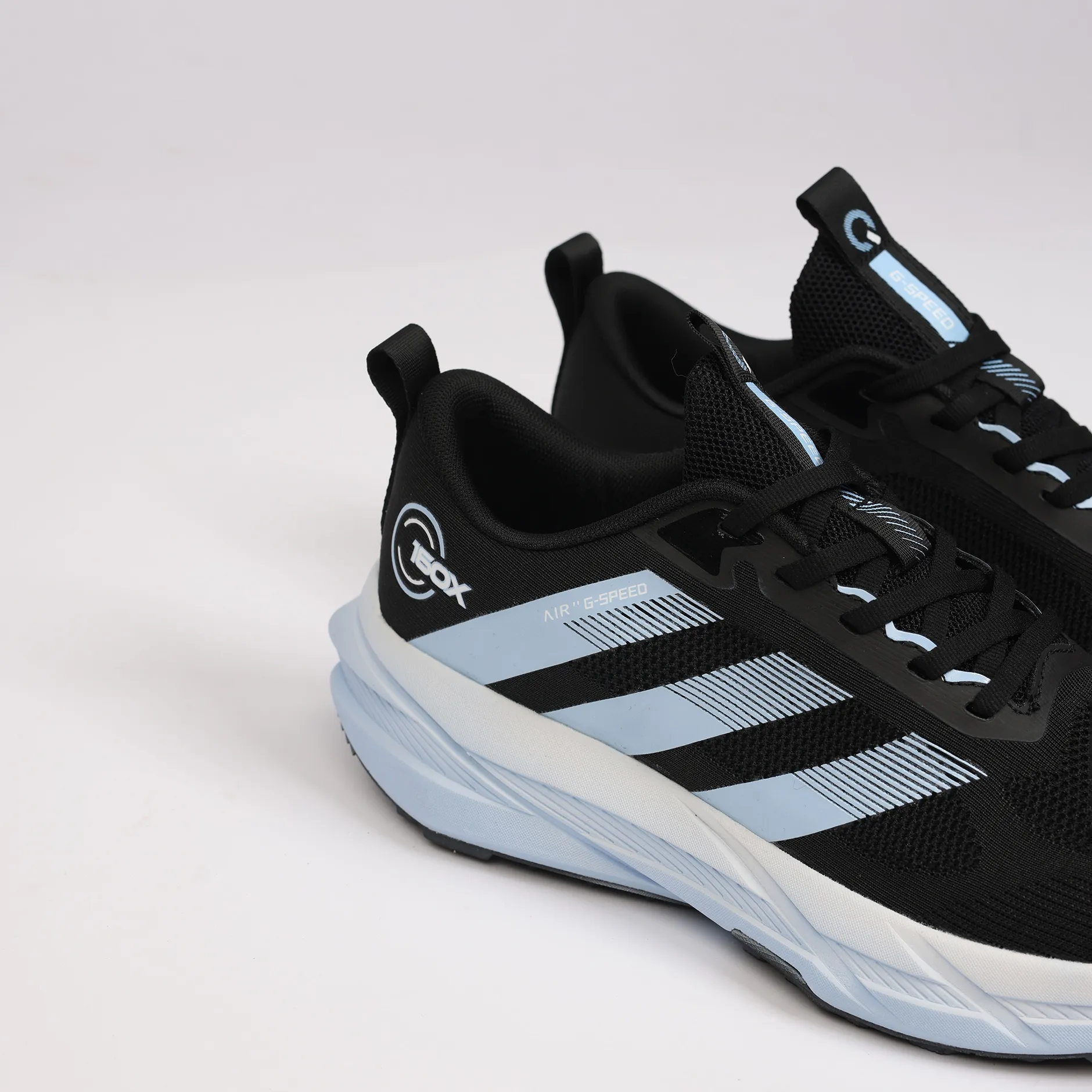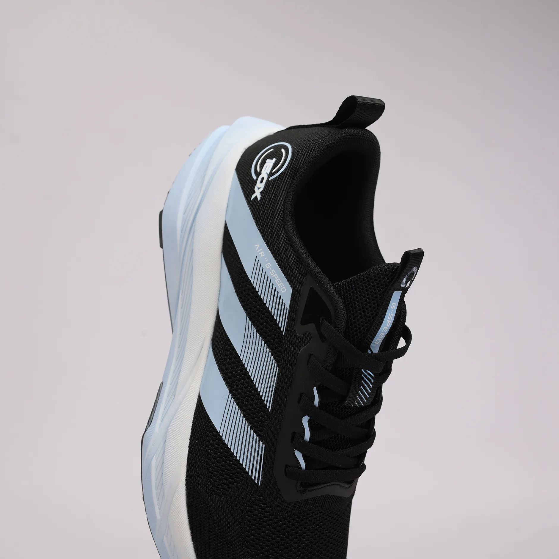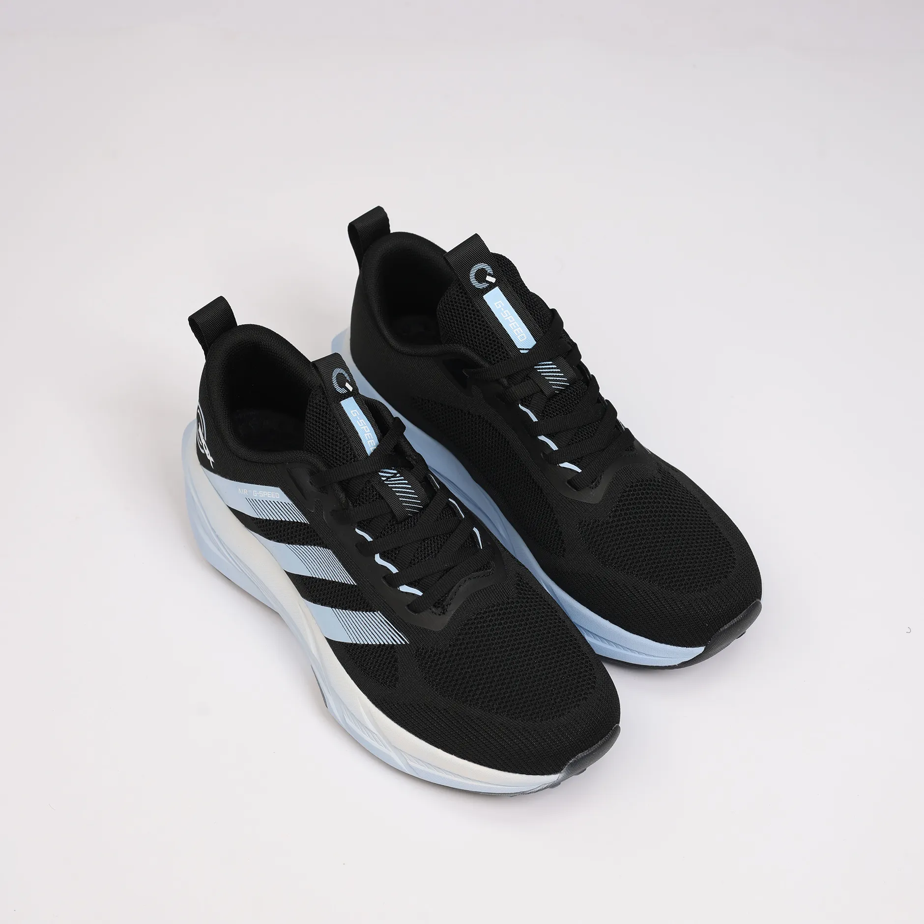 La GSpeed AeroFlux 160X – Night Frost marie élégance sombre et détails givrés dans une silhouette conçue pour accompagner les journées actives. Sa tige en mesh noir ultra-respirant assure un maintien précis tout en gardant le pied au frais, tandis que les bandes bleu glacé apportent une touche moderne et dynamique.
