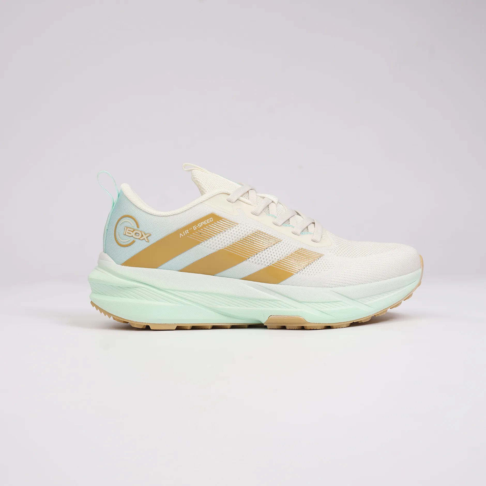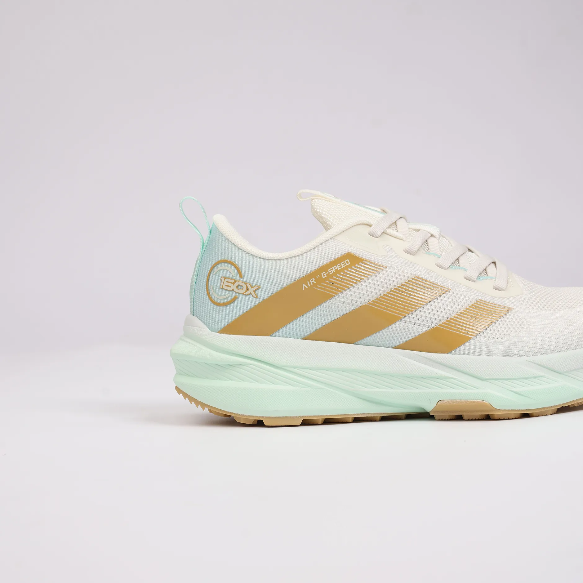 Conçue avec une palette moderne mêlant blanc crème, doré et vert menthe, la AeroFlux 150X allie performance et style, que ce soit pour l’entraînement ou une utilisation quotidienne. Une chaussure pensée au Maroc, pour les athlètes qui veulent aller plus loin.