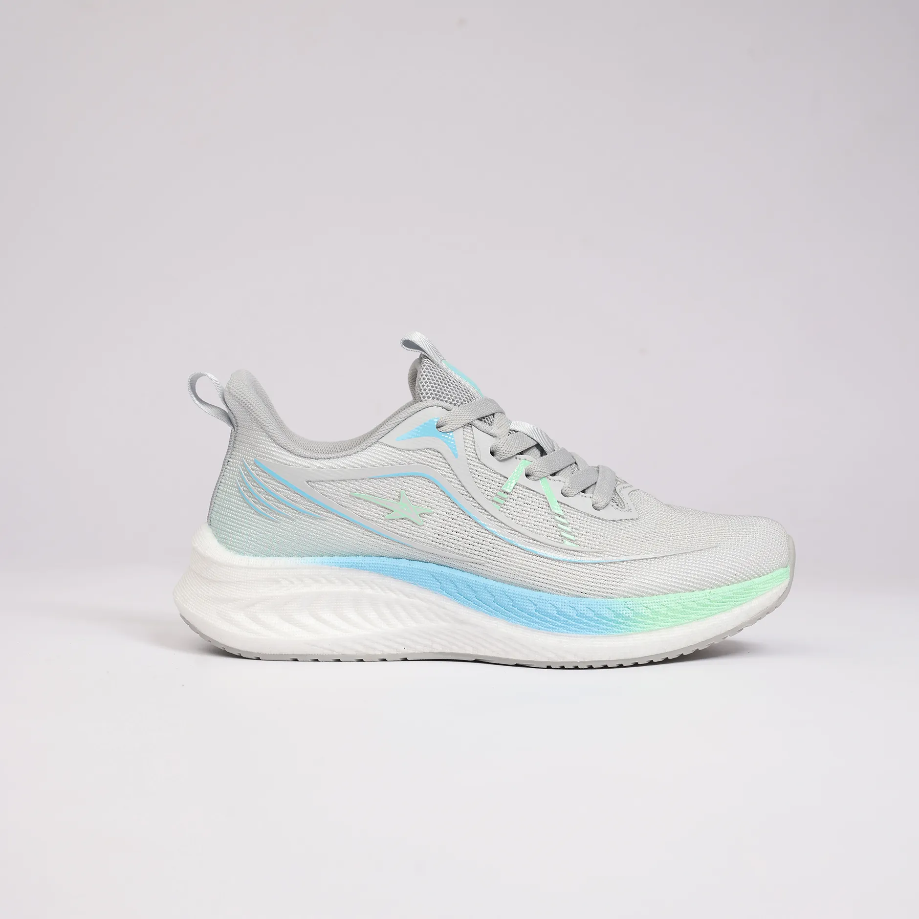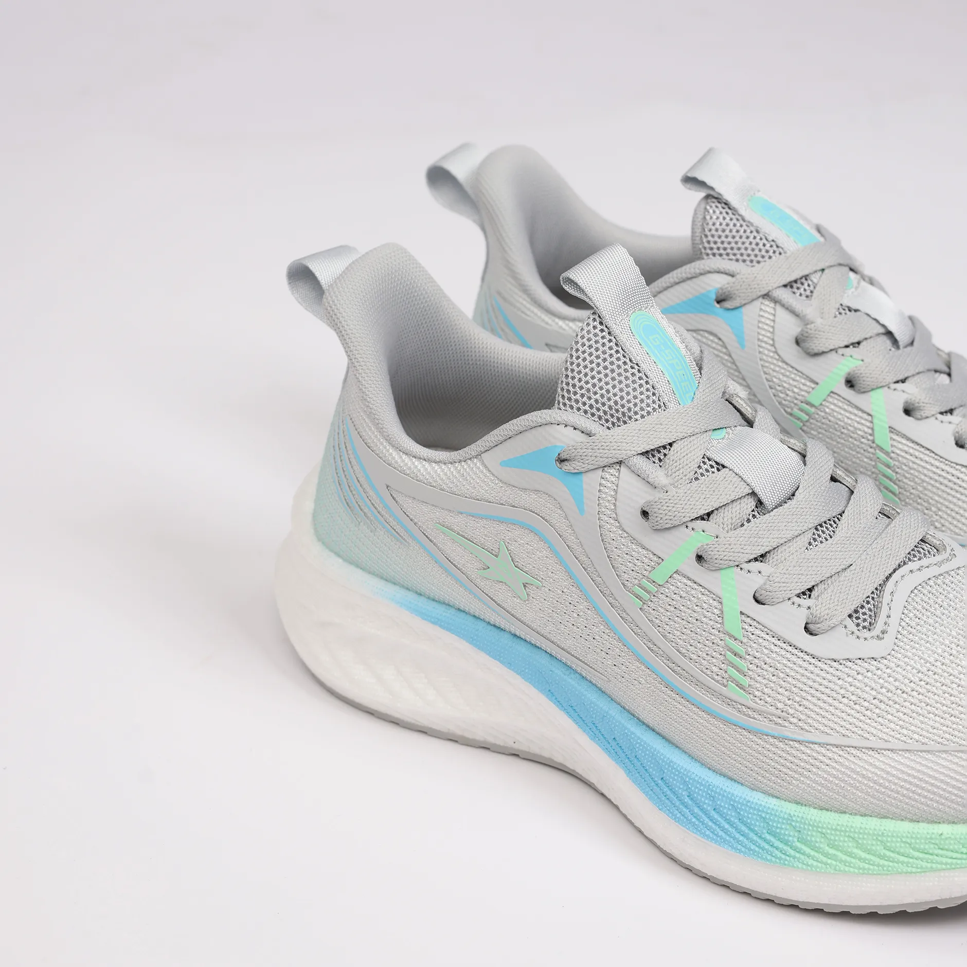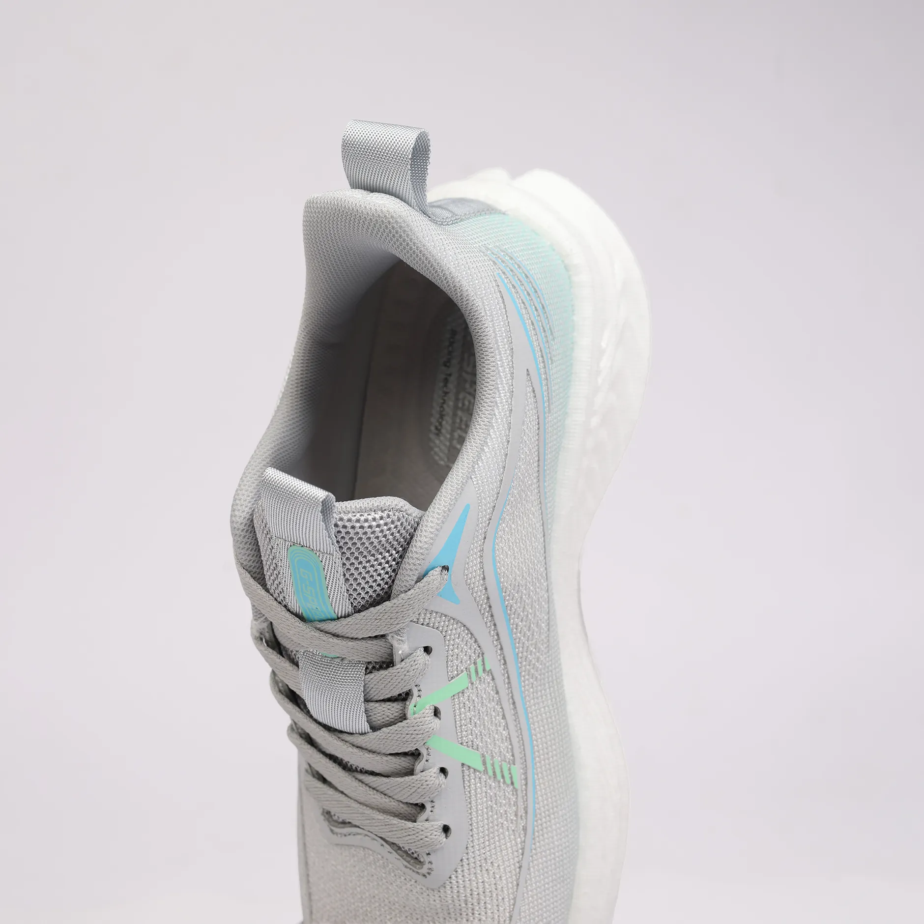 La GSpeed AeroStar – Crystal Breeze se distingue par son esthétique lumineuse et son confort aérien. Sa tige en mesh gris clair apporte une sensation de légèreté exceptionnelle, tout en assurant une excellente respirabilité pour accompagner vos journées actives sans surchauffe.
