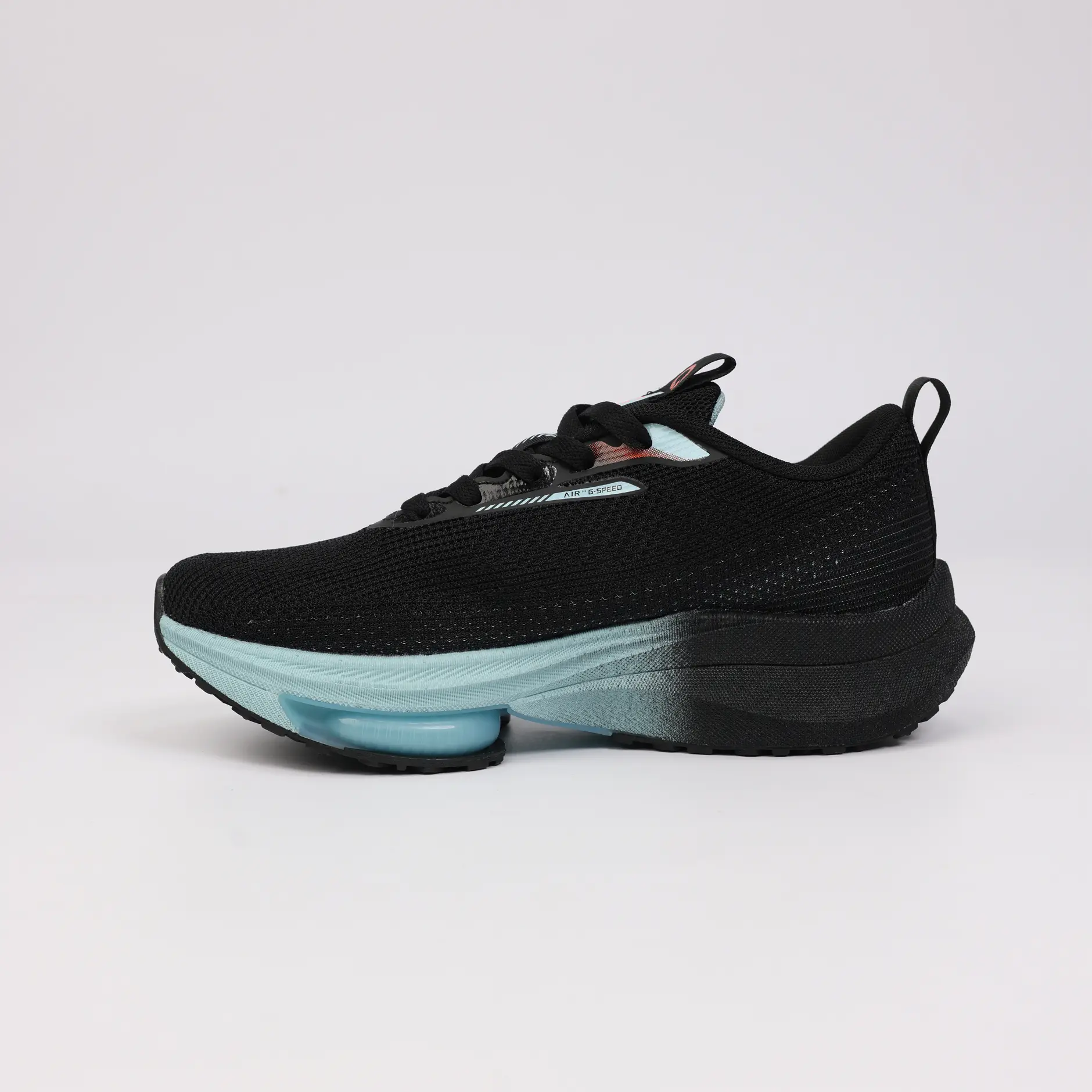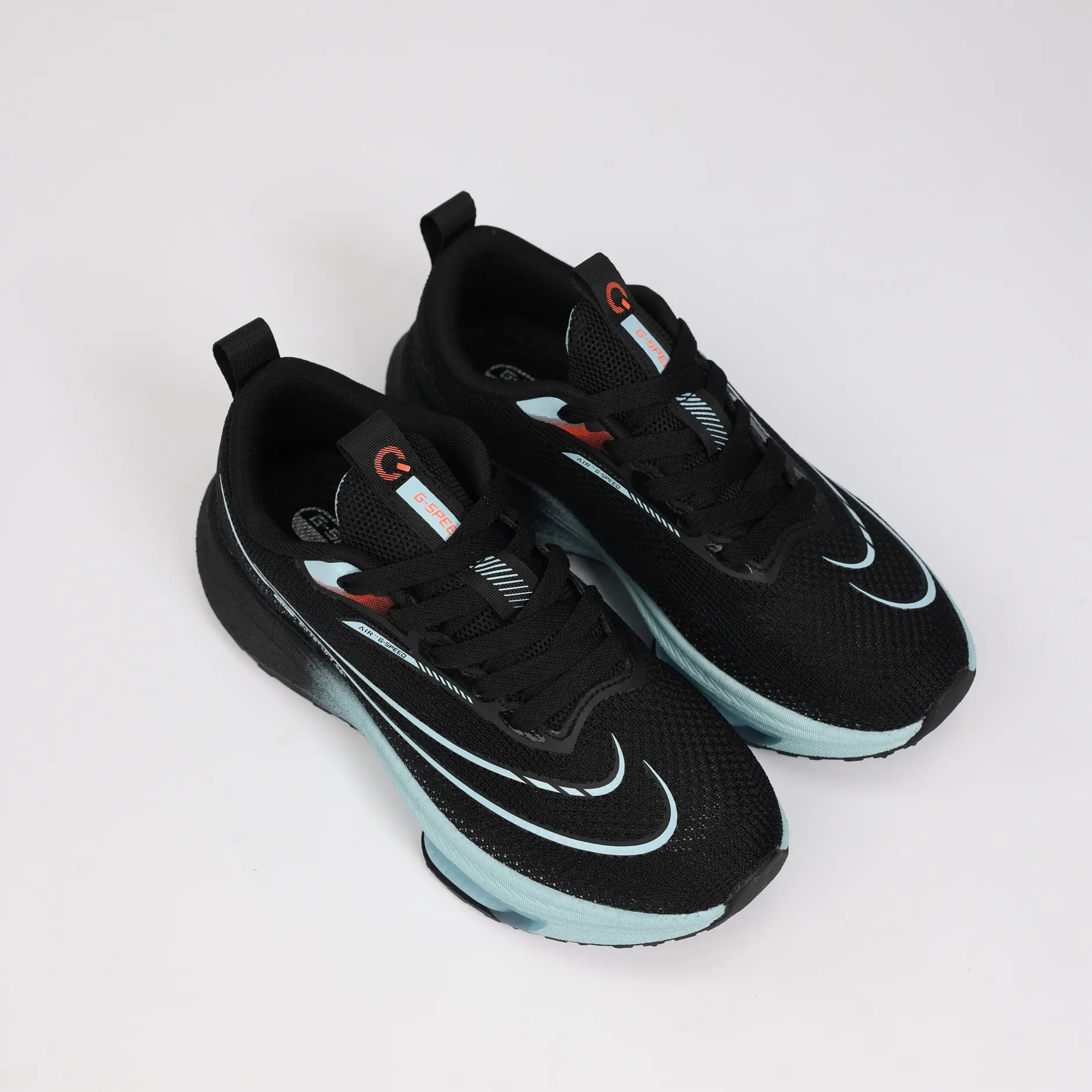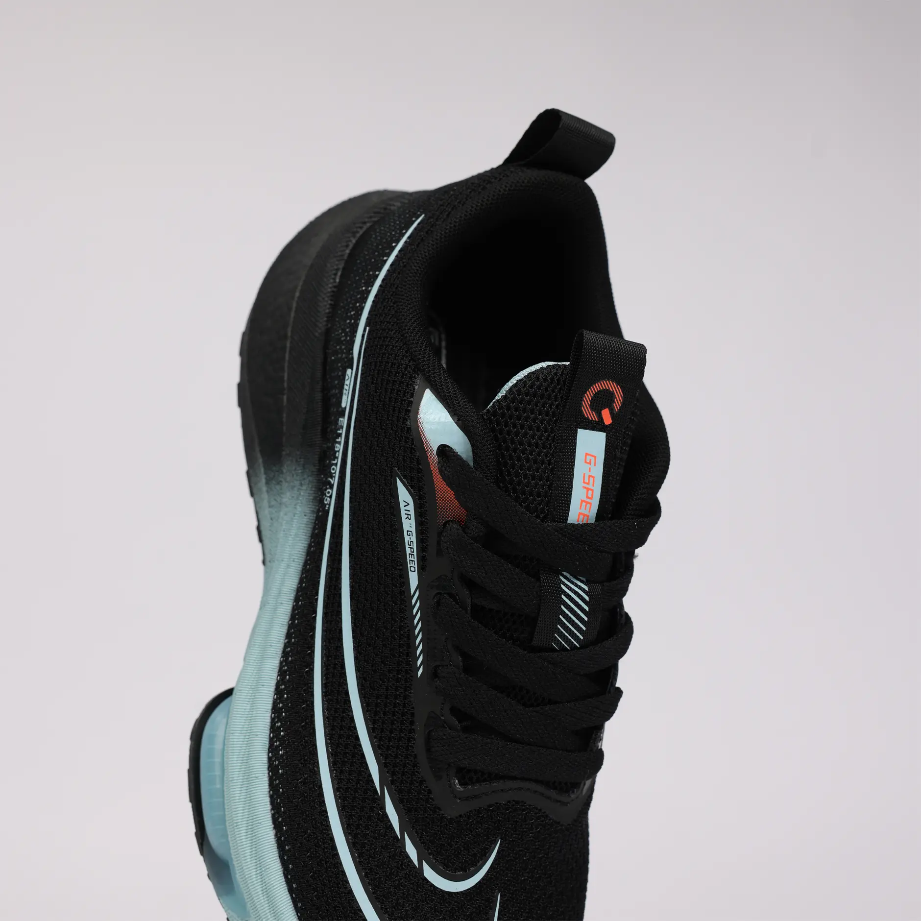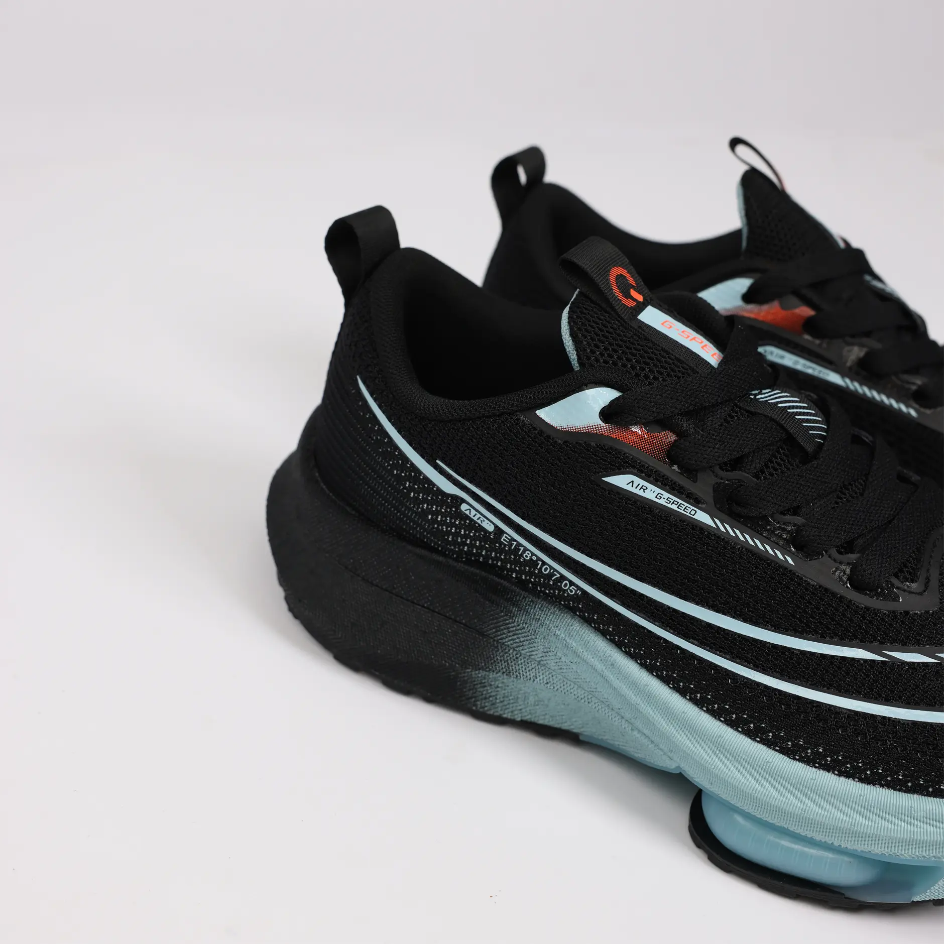 La GSPEED Aerowave Black Ice combine un look sportif puissant avec une performance exceptionnelle. Sa tige en mesh respirant noir assure une ventilation durable, tandis que la semelle amortissante bicolore avec Air Cushion intégrée offre un confort supérieur et une absorption optimale des chocs.