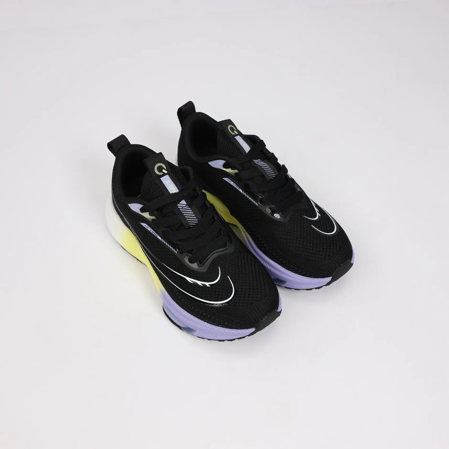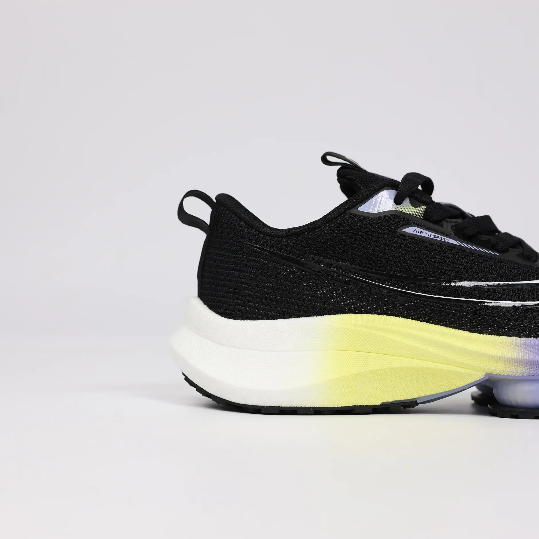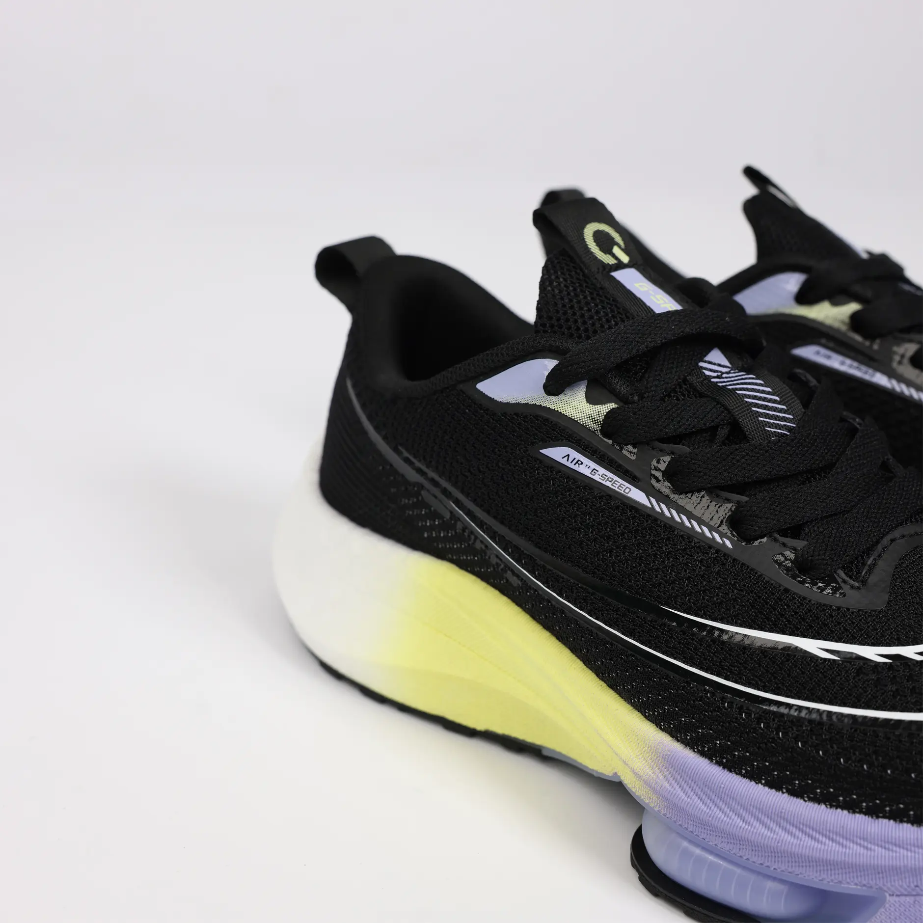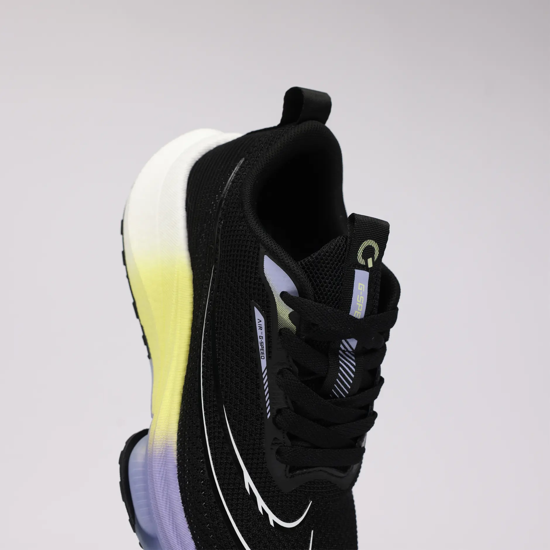 La GSPEED Aerowave Black Neon combine un style audacieux avec une performance optimale. Sa tige en mesh noir respirant assure une ventilation continue, tandis que la semelle dégradée jaune–violet apporte un look moderne et une excellente absorption des chocs grâce à la technologie Air Cushion.