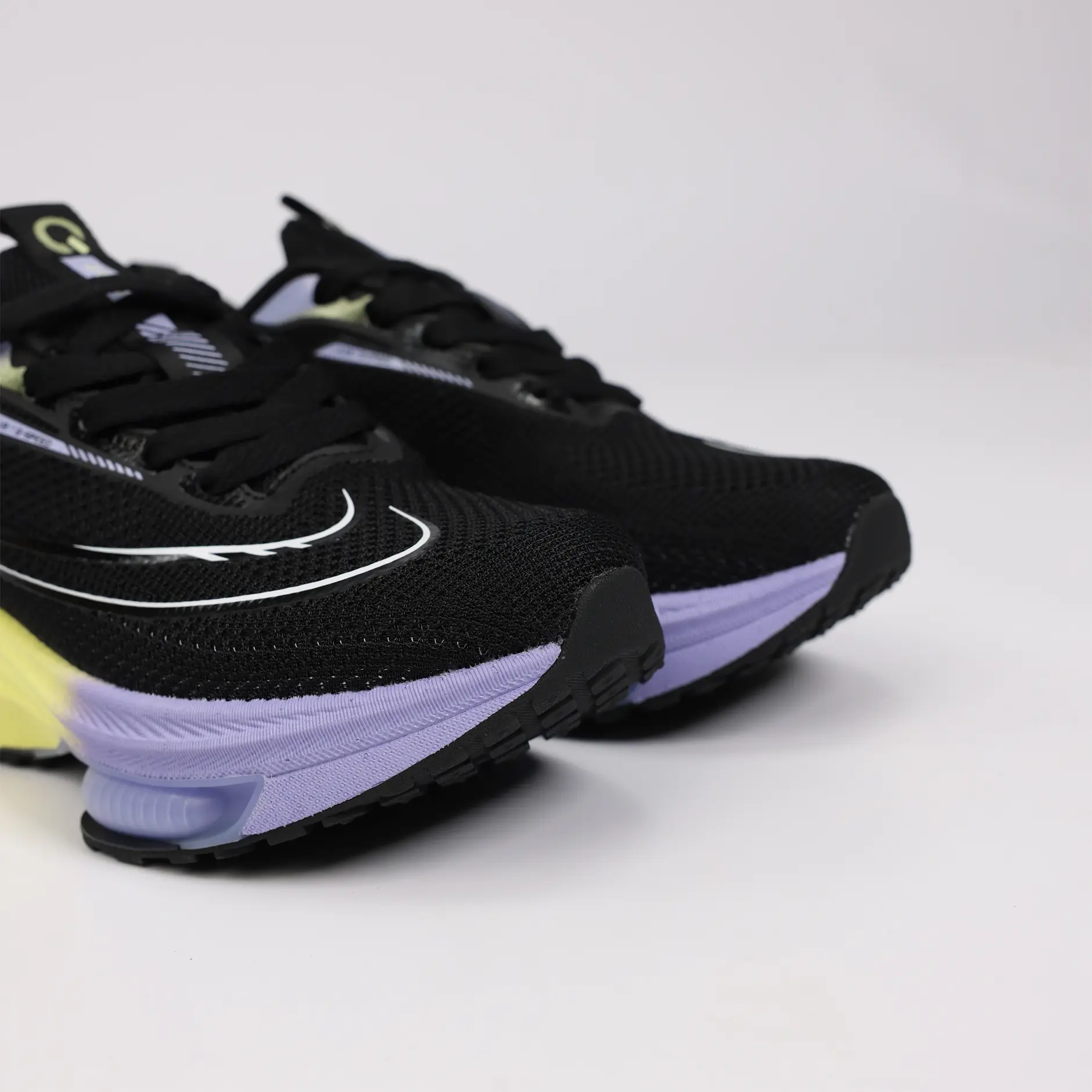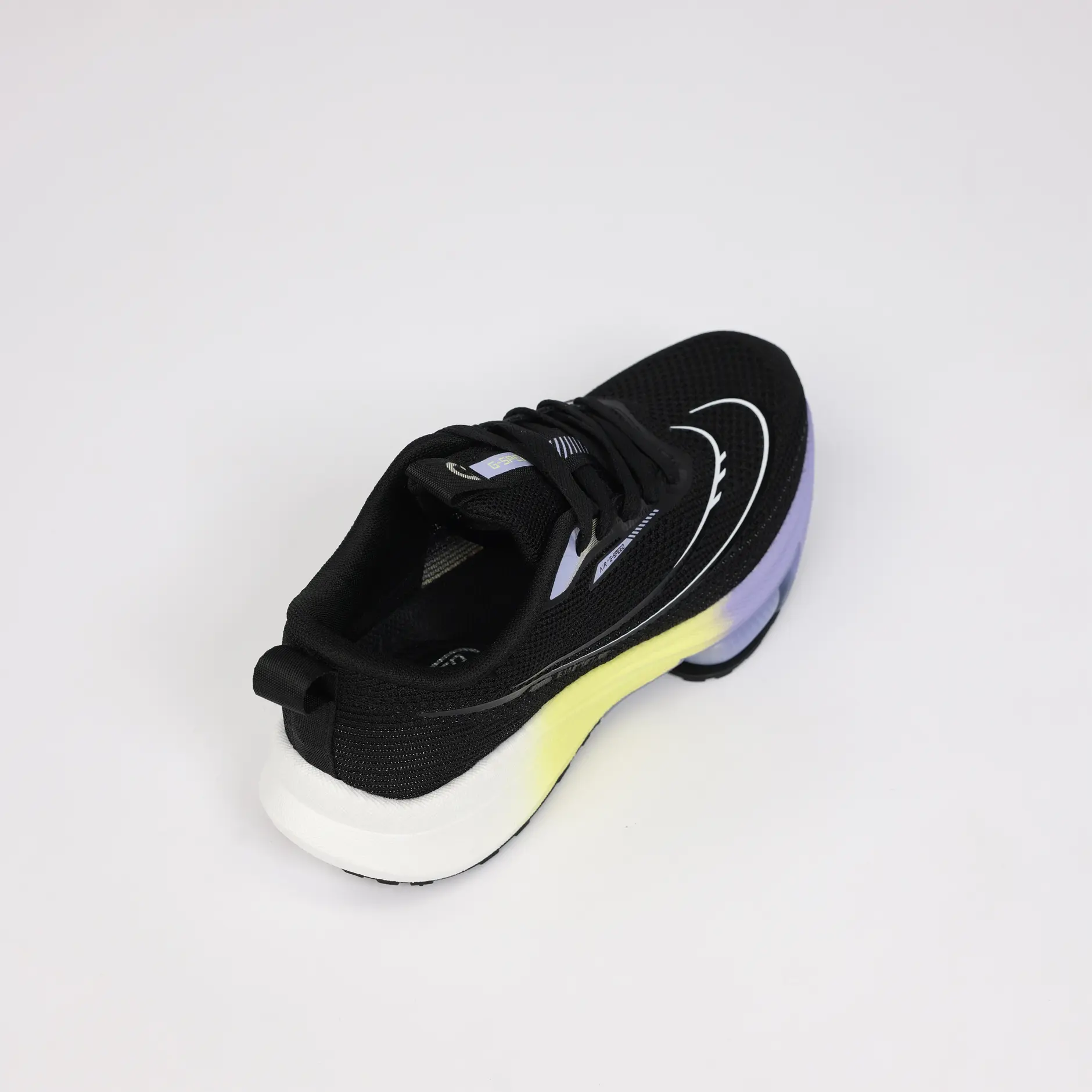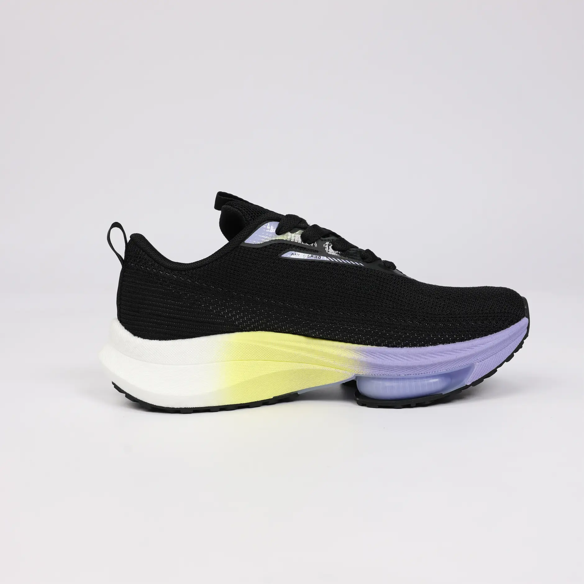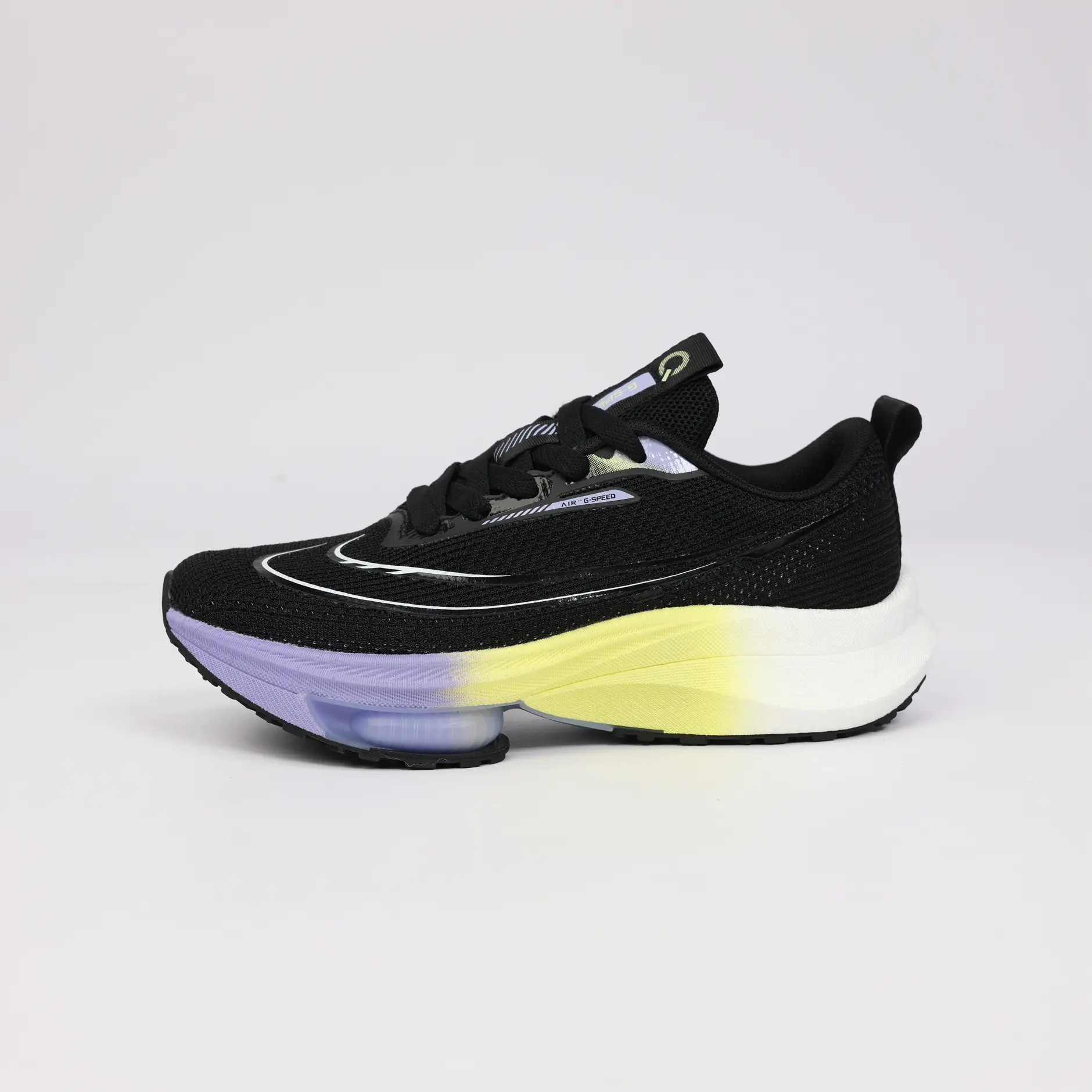 La GSPEED Aerowave Black Neon combine un style audacieux avec une performance optimale. Sa tige en mesh noir respirant assure une ventilation continue, tandis que la semelle dégradée jaune–violet apporte un look moderne et une excellente absorption des chocs grâce à la technologie Air Cushion.