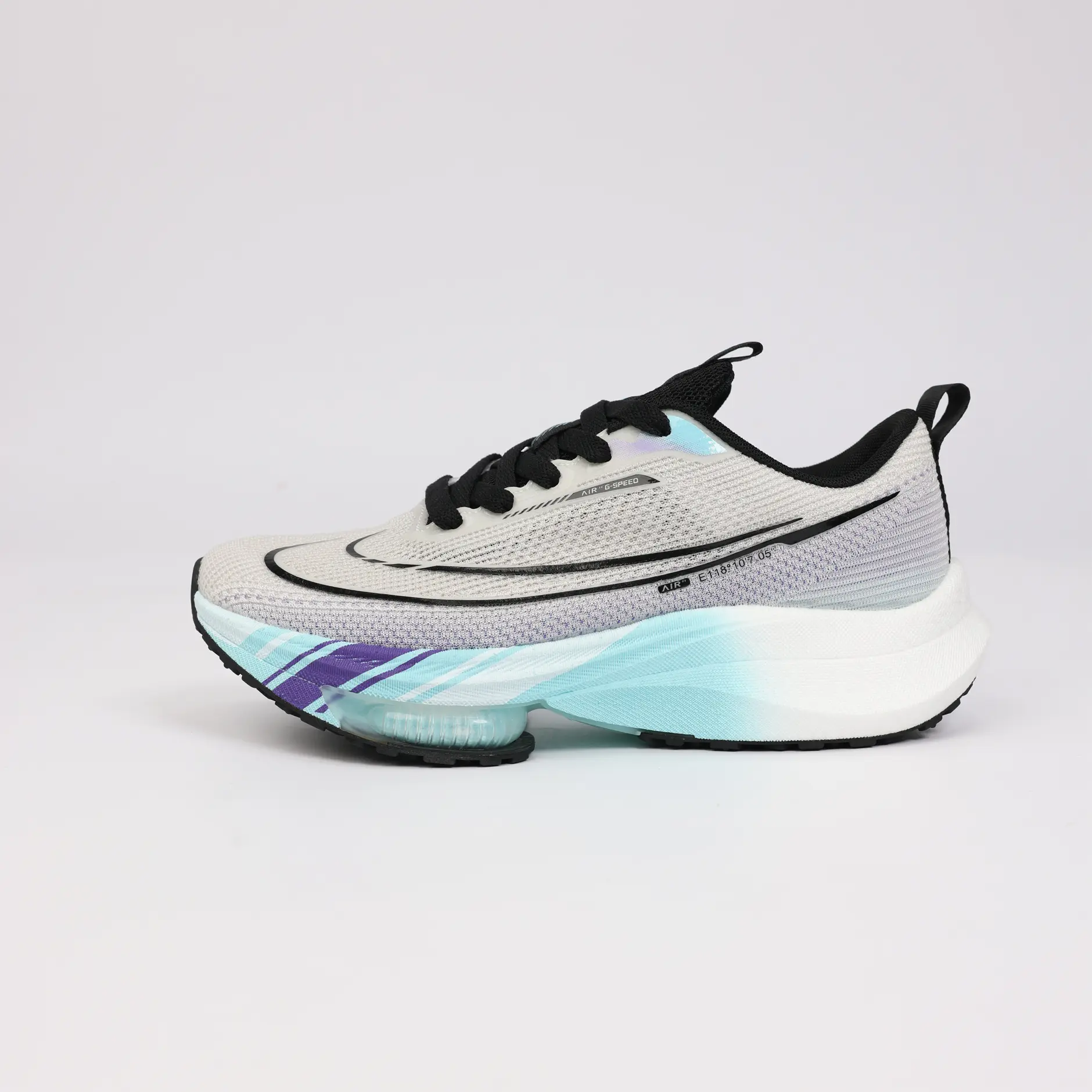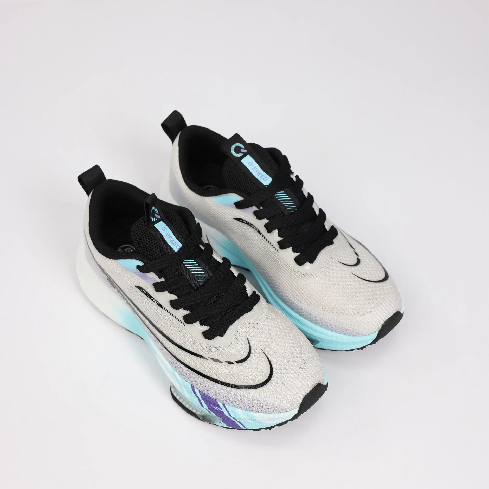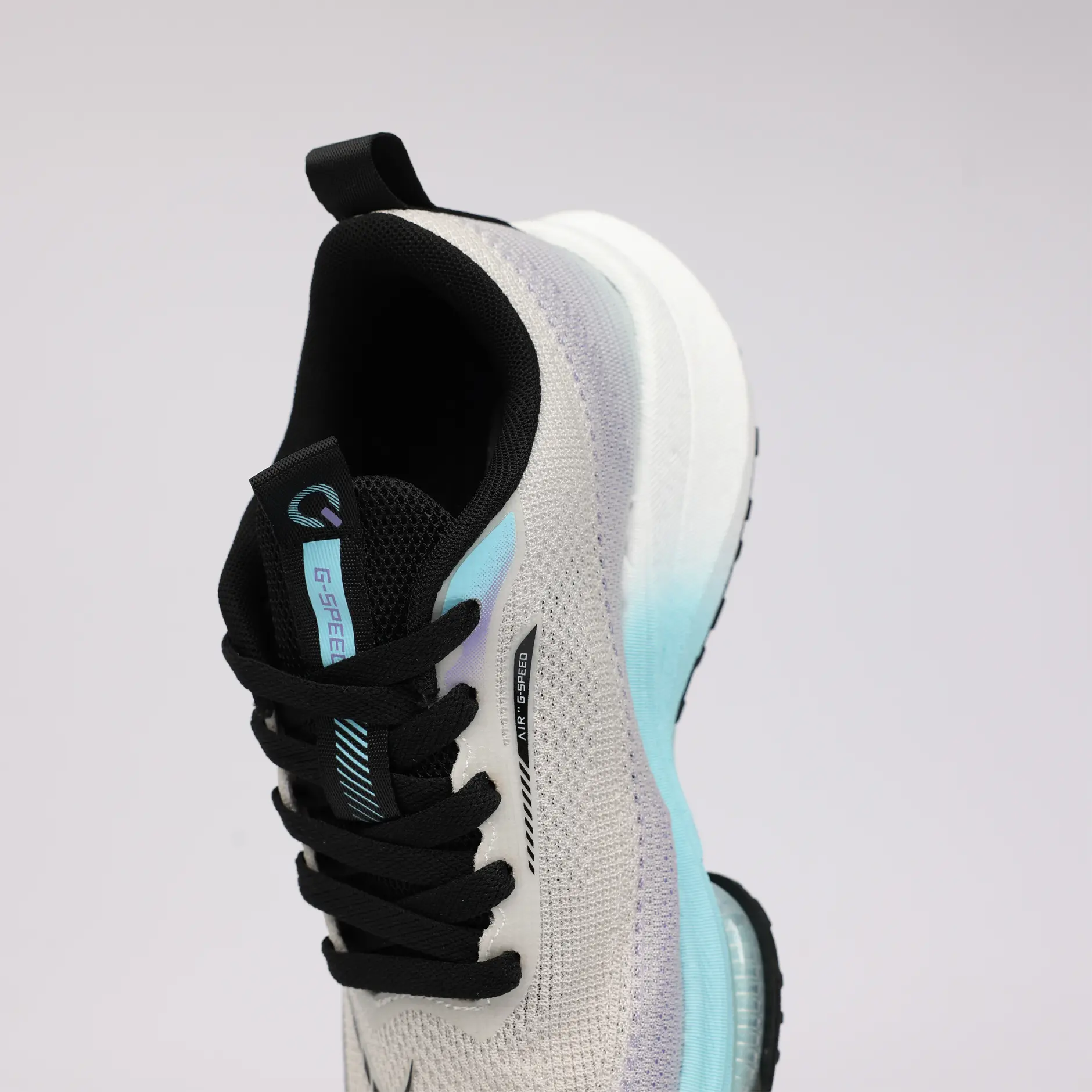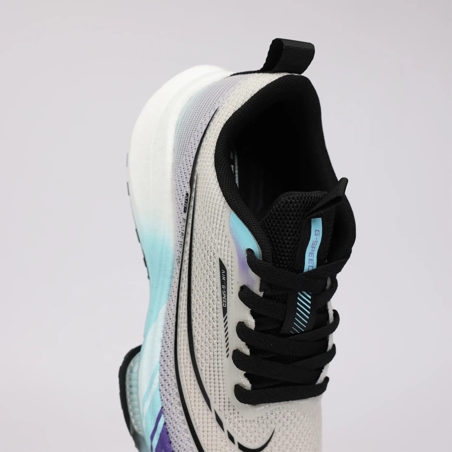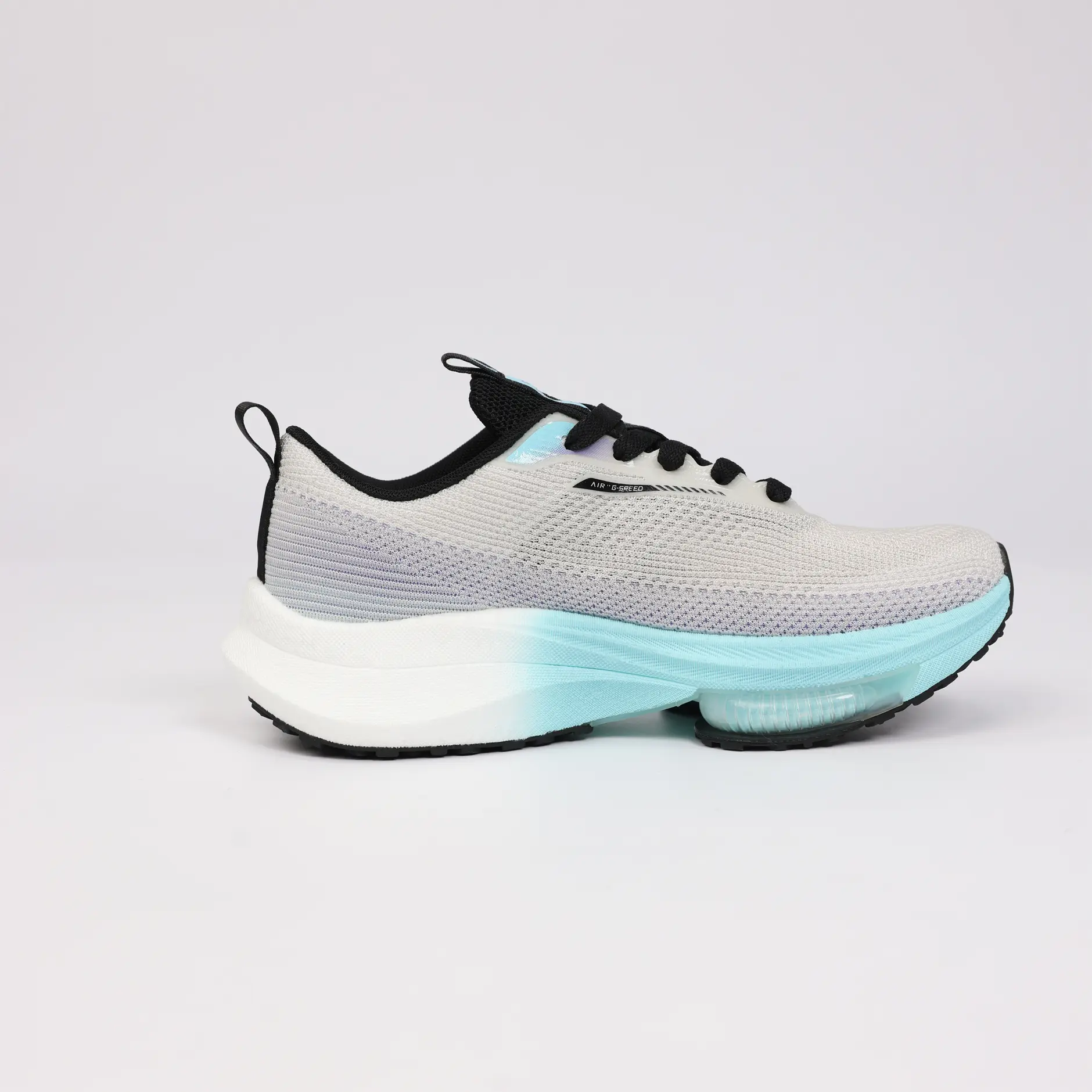 La GSPEED Aerowave Ice Purple combine un style sportif moderne avec un confort exceptionnel. Sa tige en mesh respirant gris clair assure une ventilation optimale, tandis que la semelle dégradée bleu–violet dotée de la technologie Air Cushion offre un amorti supérieur et une foulée fluide.