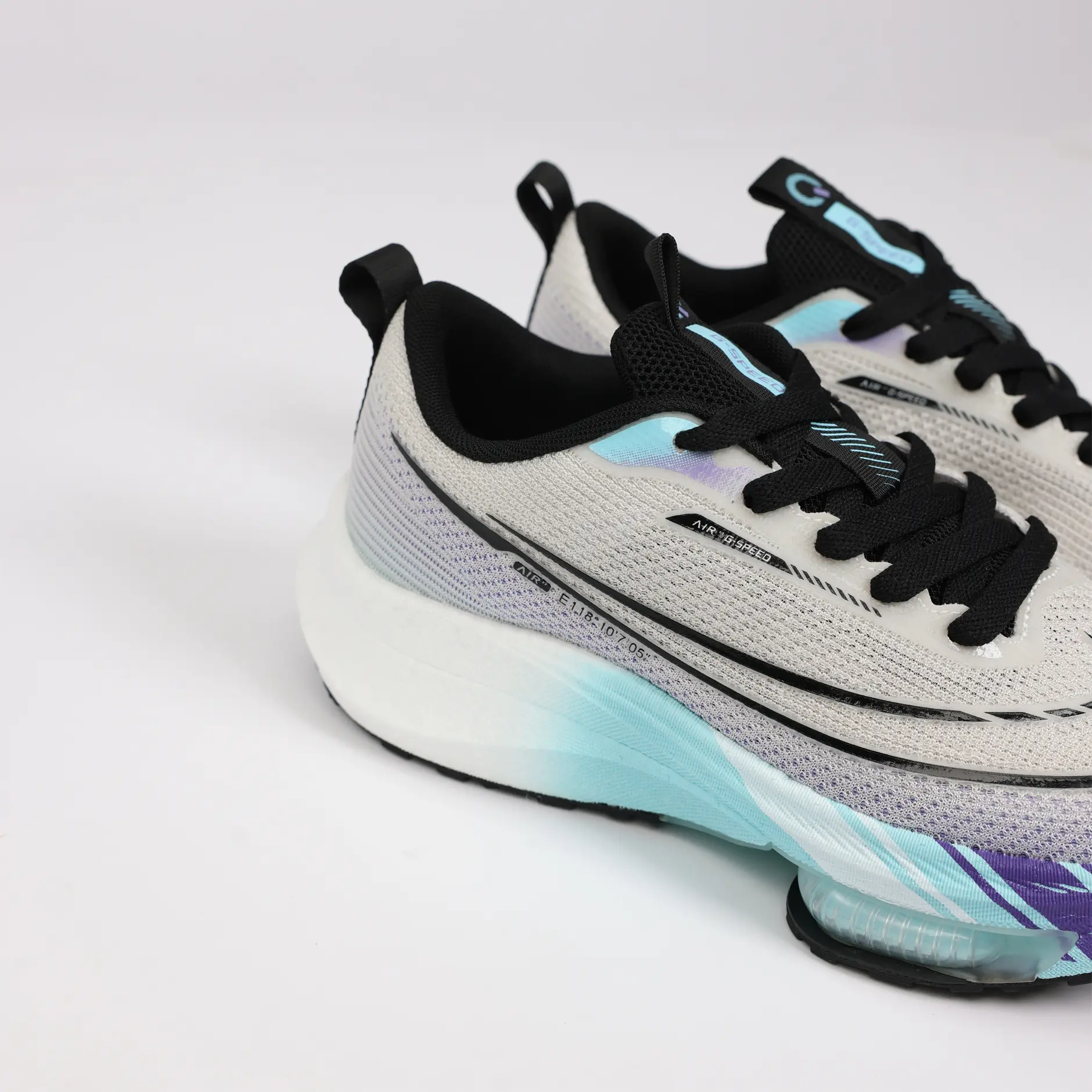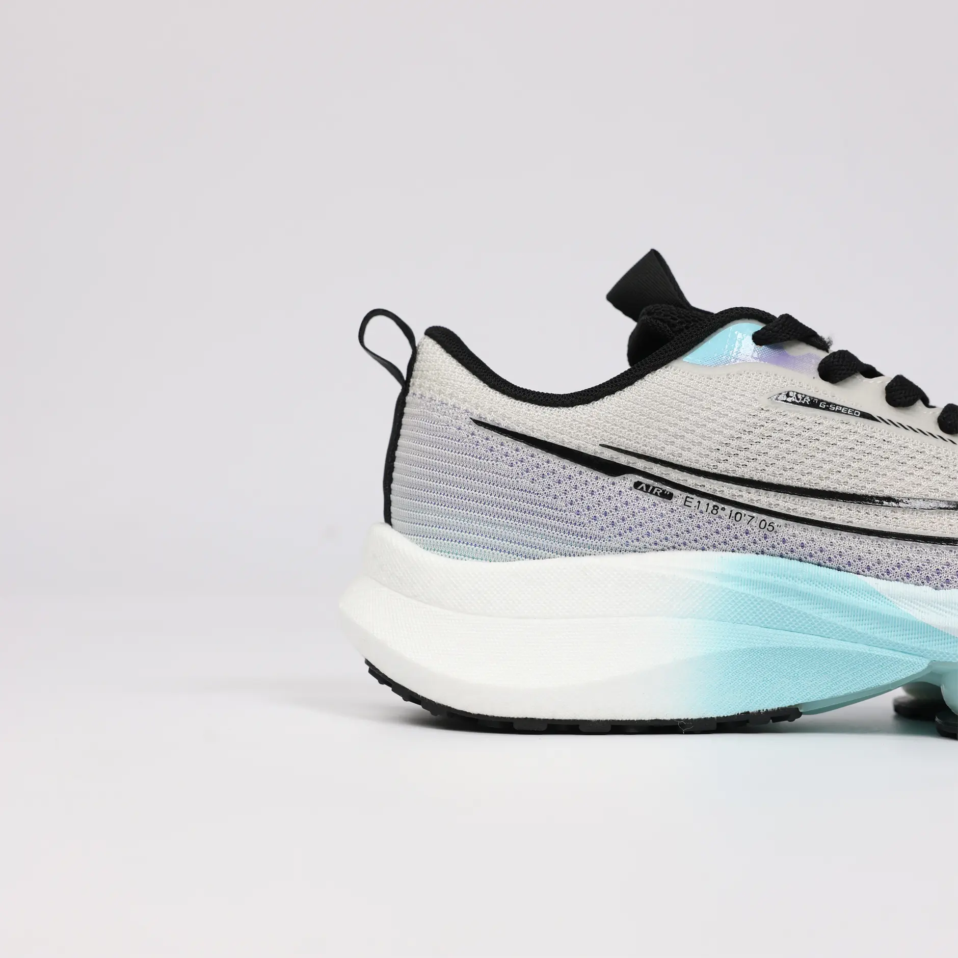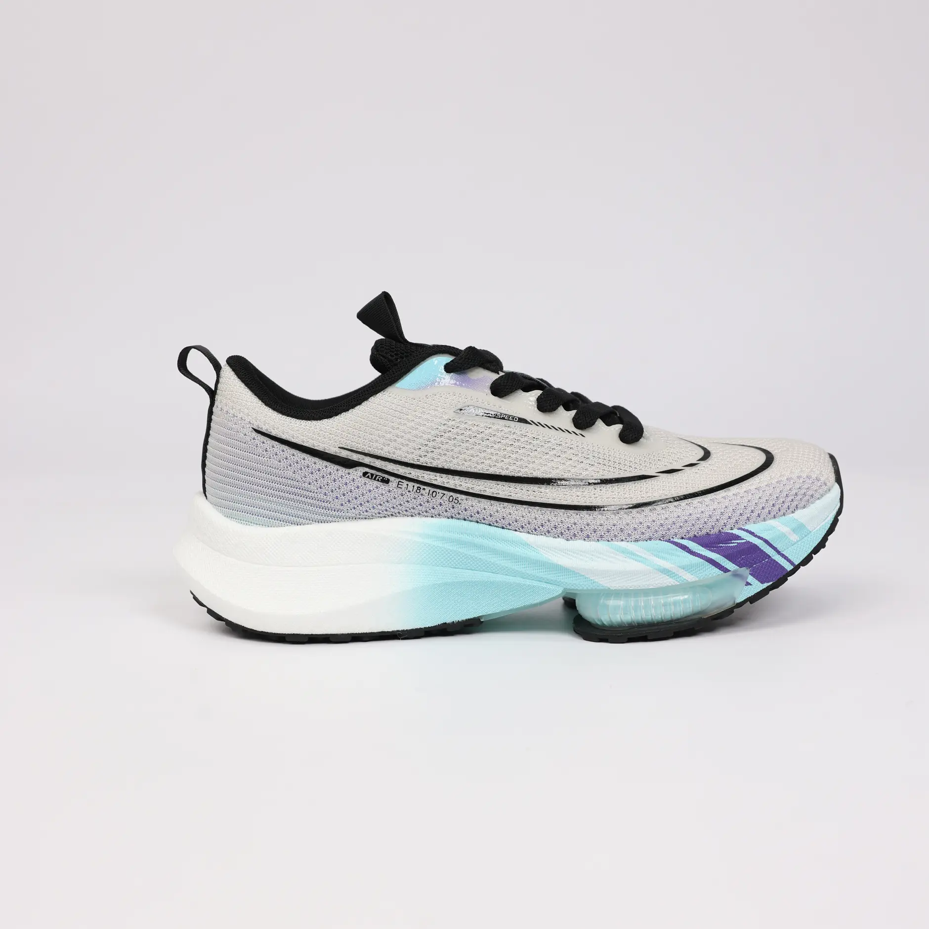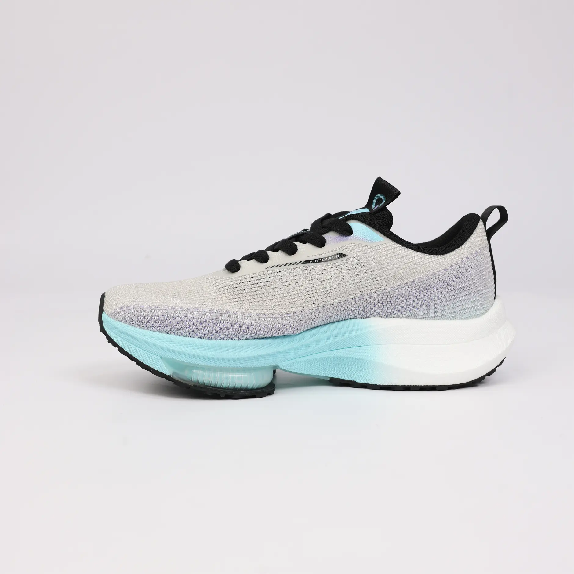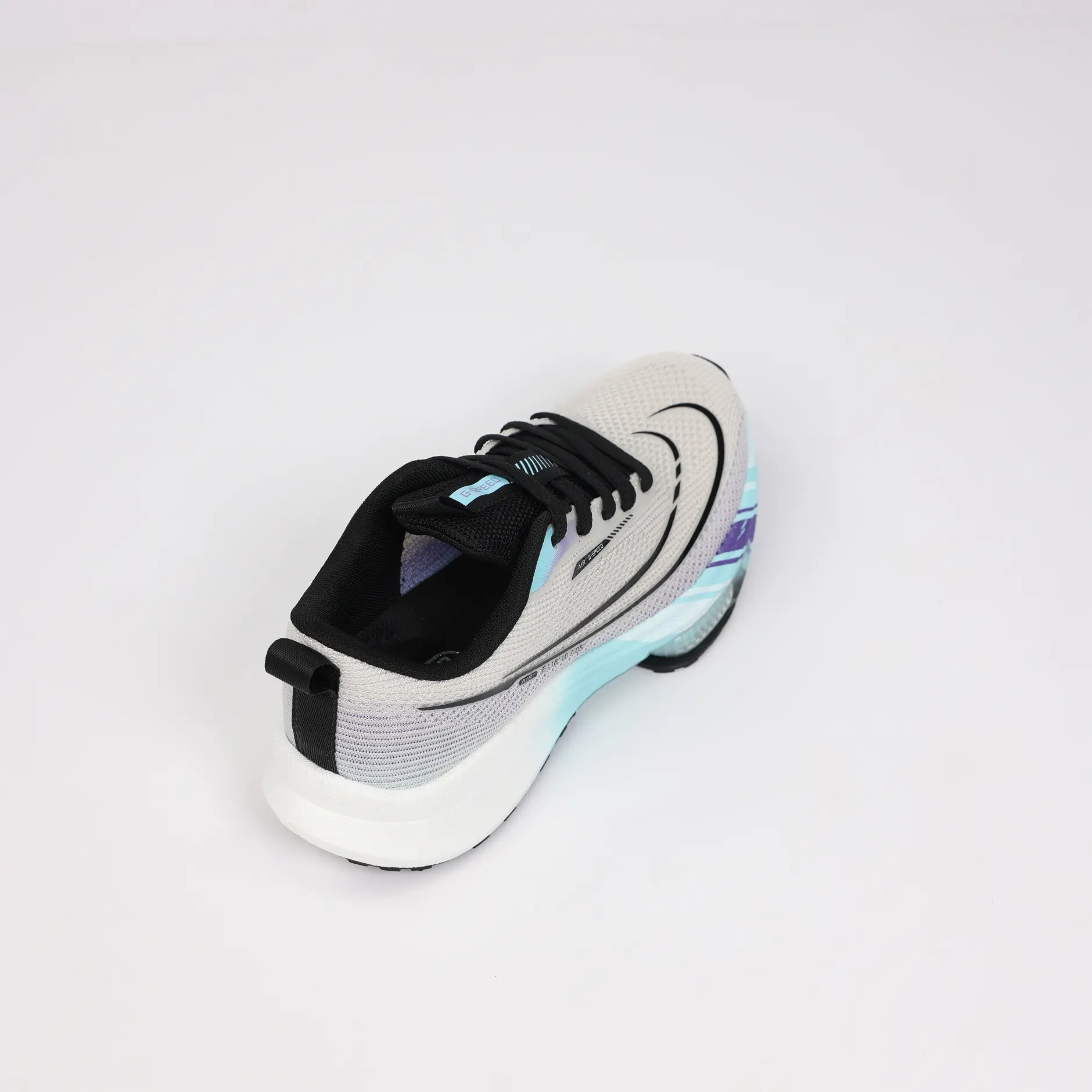La GSPEED Aerowave Ice Purple combine un style sportif moderne avec un confort exceptionnel. Sa tige en mesh respirant gris clair assure une ventilation optimale, tandis que la semelle dégradée bleu–violet dotée de la technologie Air Cushion offre un amorti supérieur et une foulée fluide.
