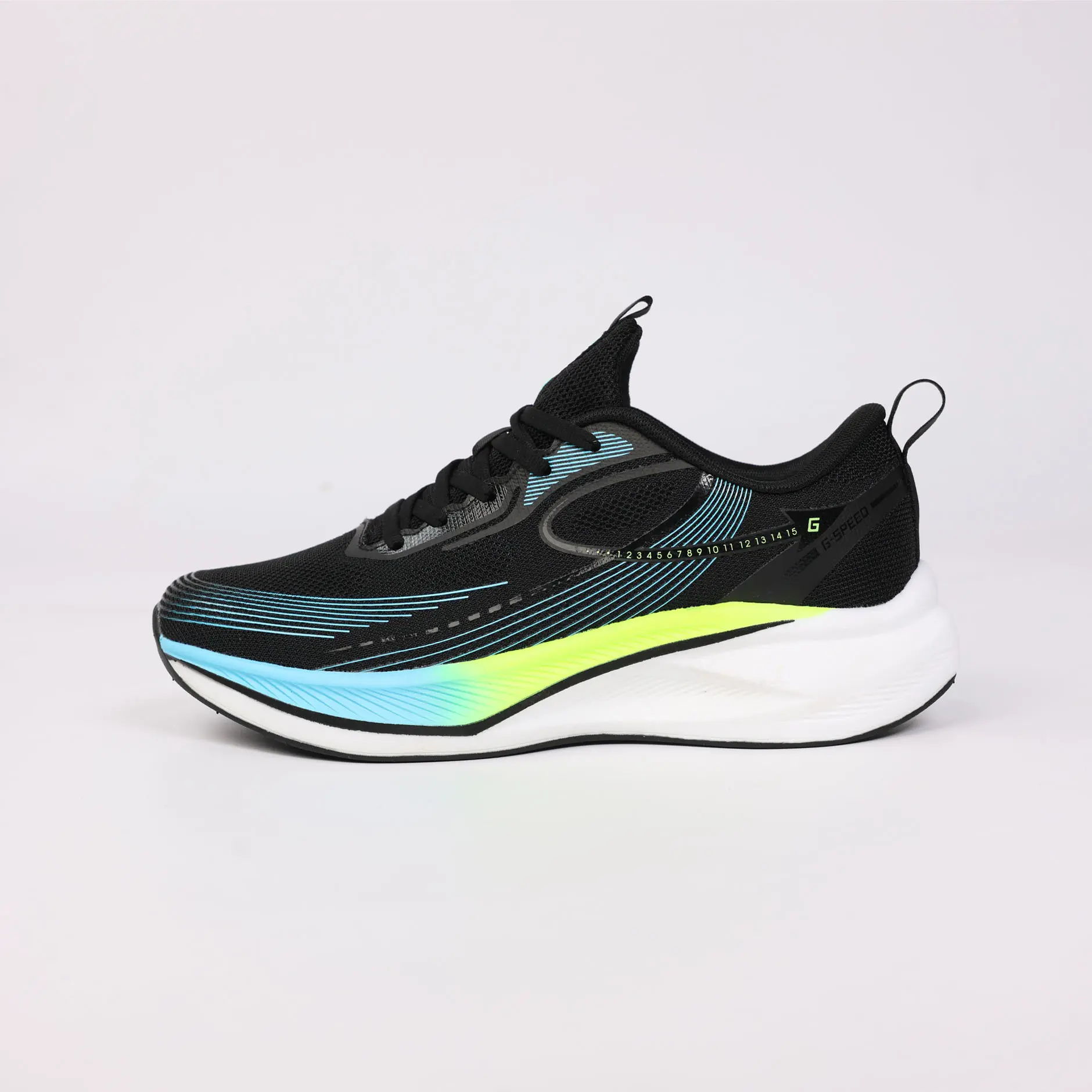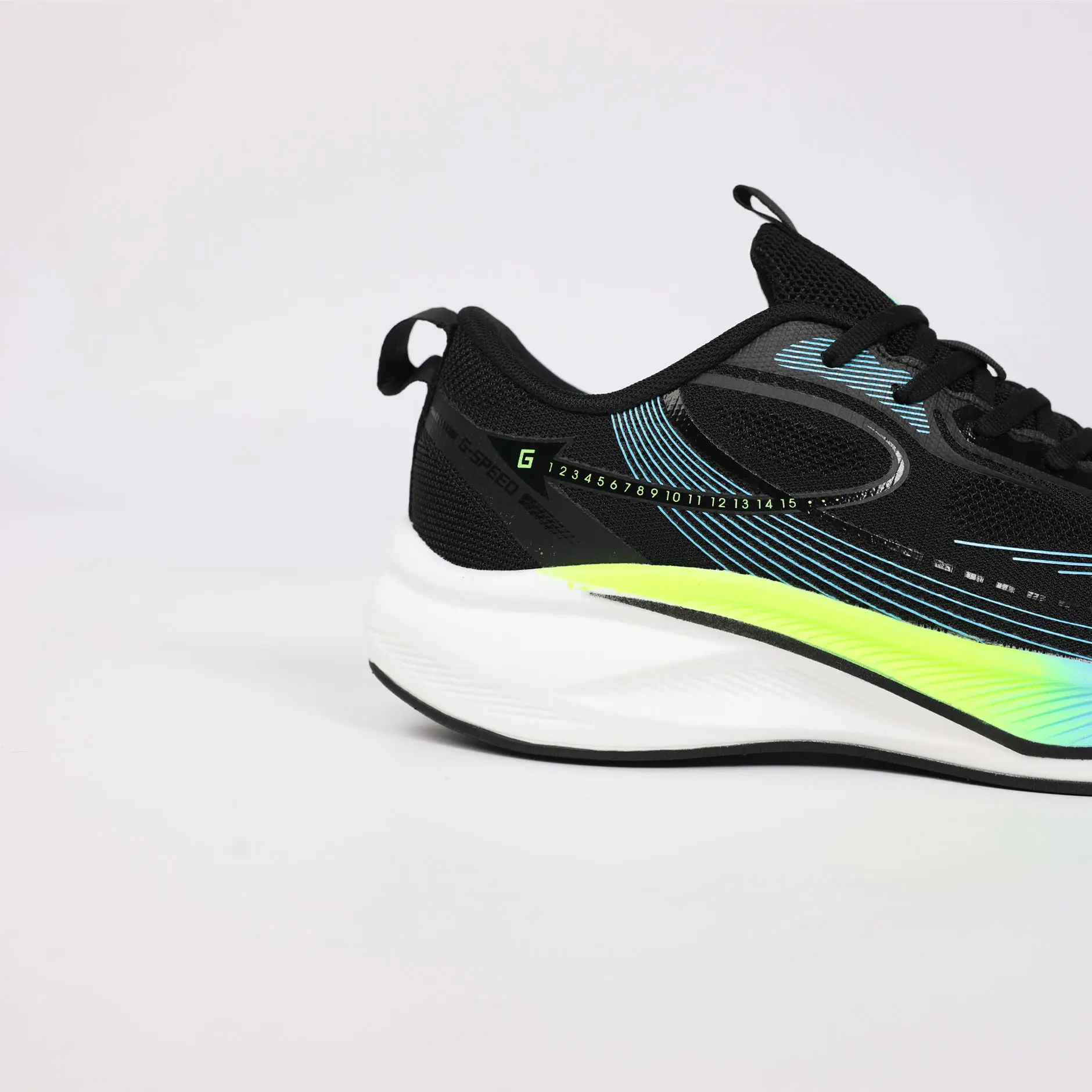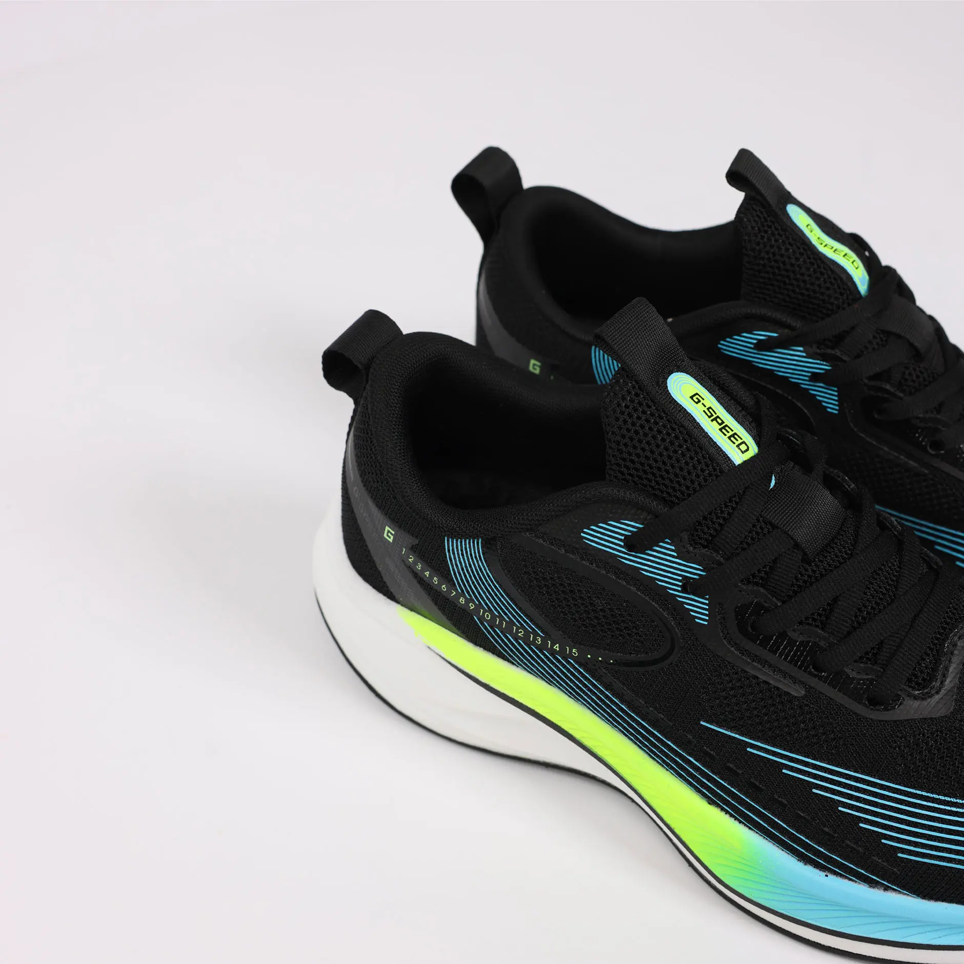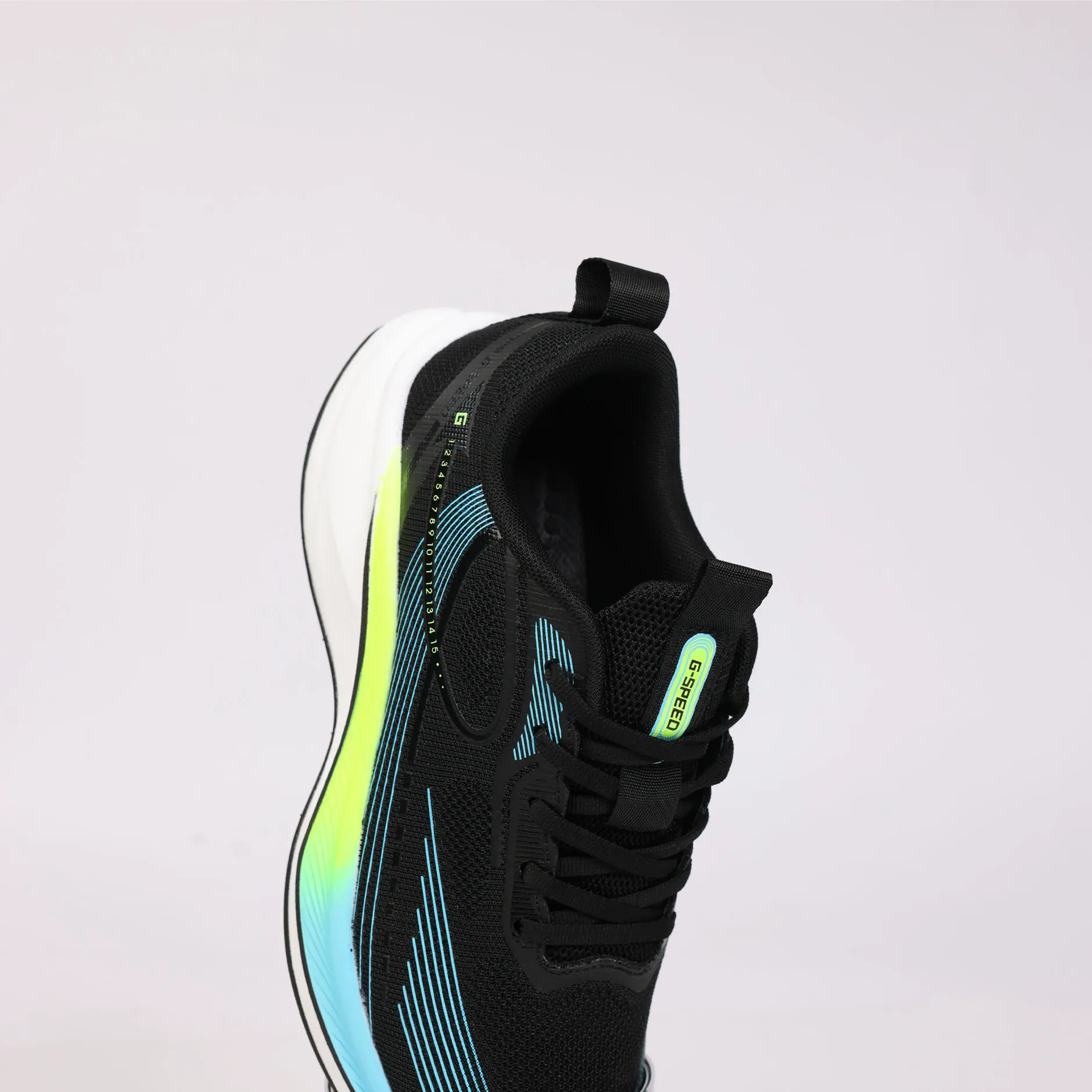 Découvrez la G-Speed FlexRide – Noir/Bleu, une chaussure de running pensée pour la vitesse, le confort et la légèreté.
