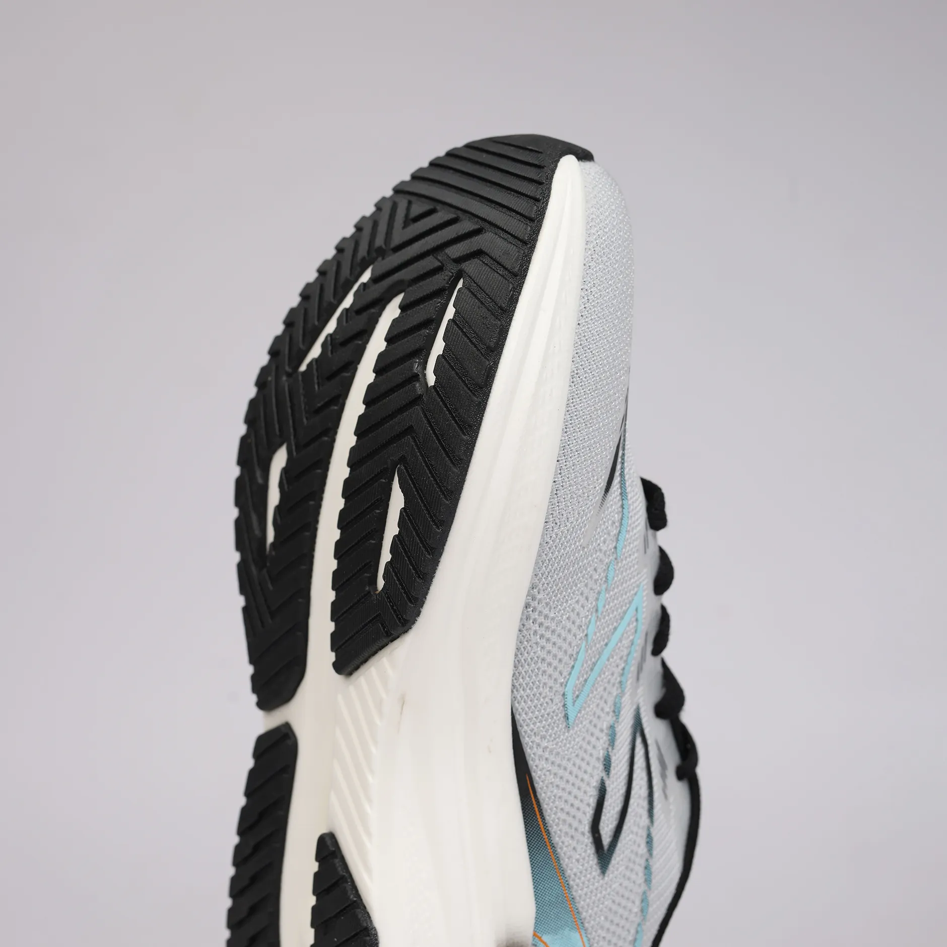 La semelle intermédiaire à volume généreux offre un amorti réactif, idéal pour absorber les impacts lors de la marche rapide, des entraînements légers ou des déplacements urbains. La zone arrière légèrement relevée contribue à une transition plus fluide, tandis que la semelle extérieure en caoutchouc assure une adhérence fiable sur différentes surfaces.