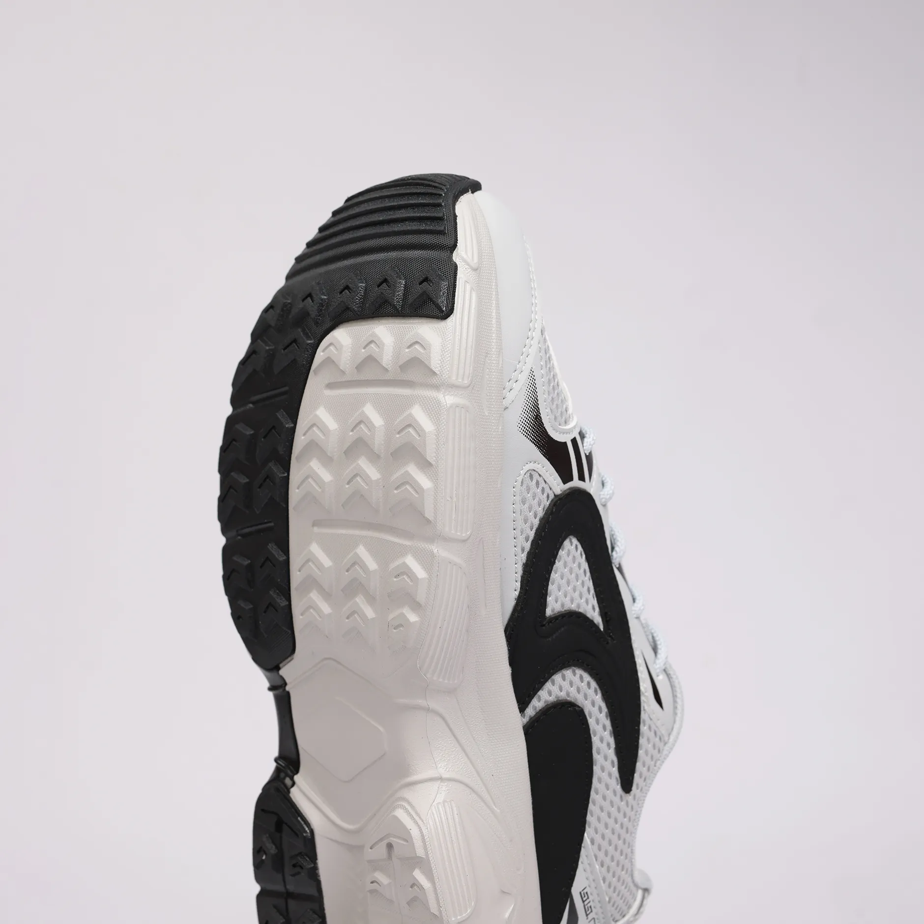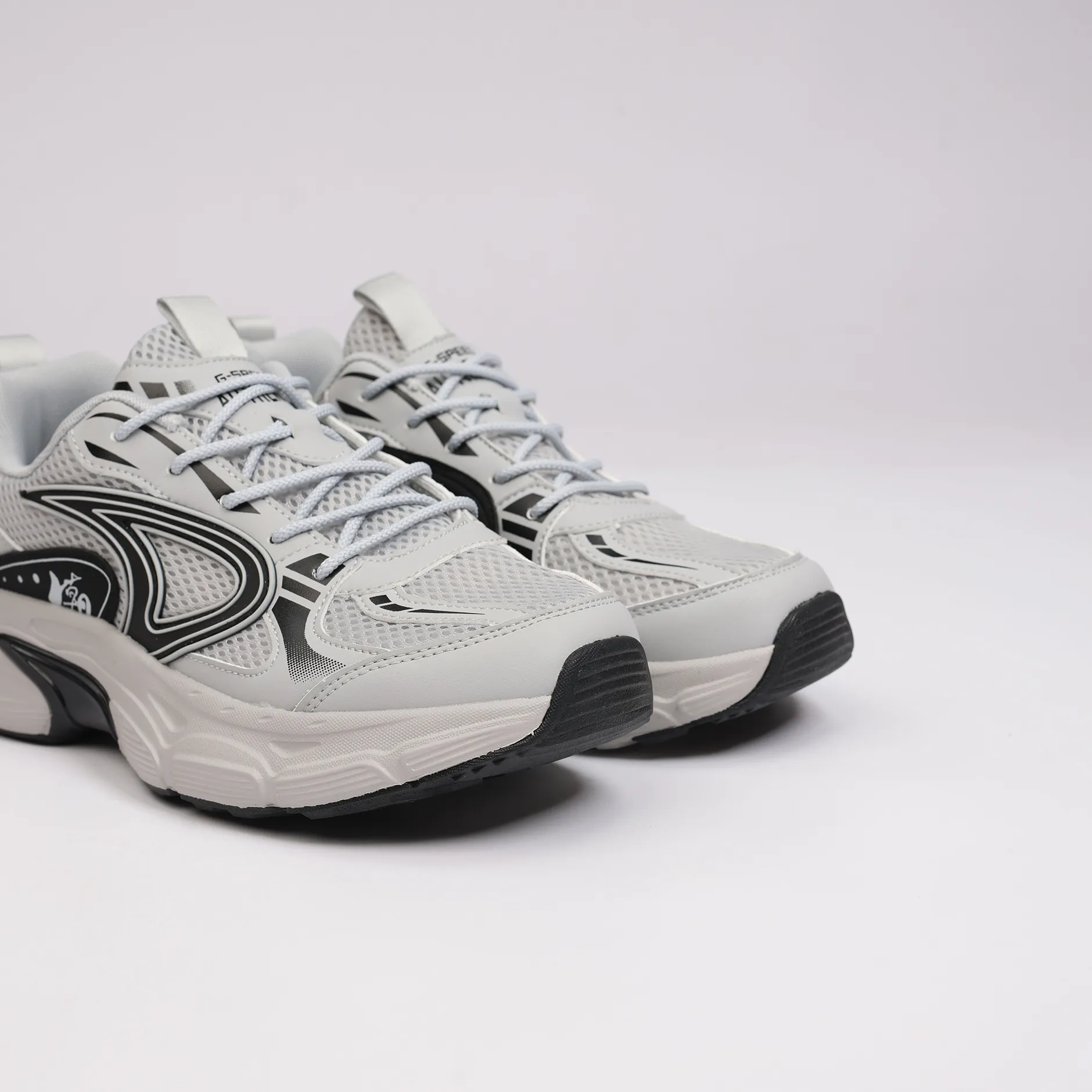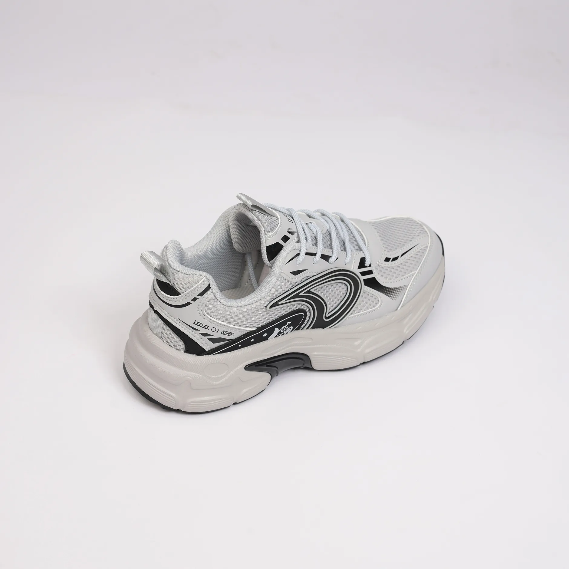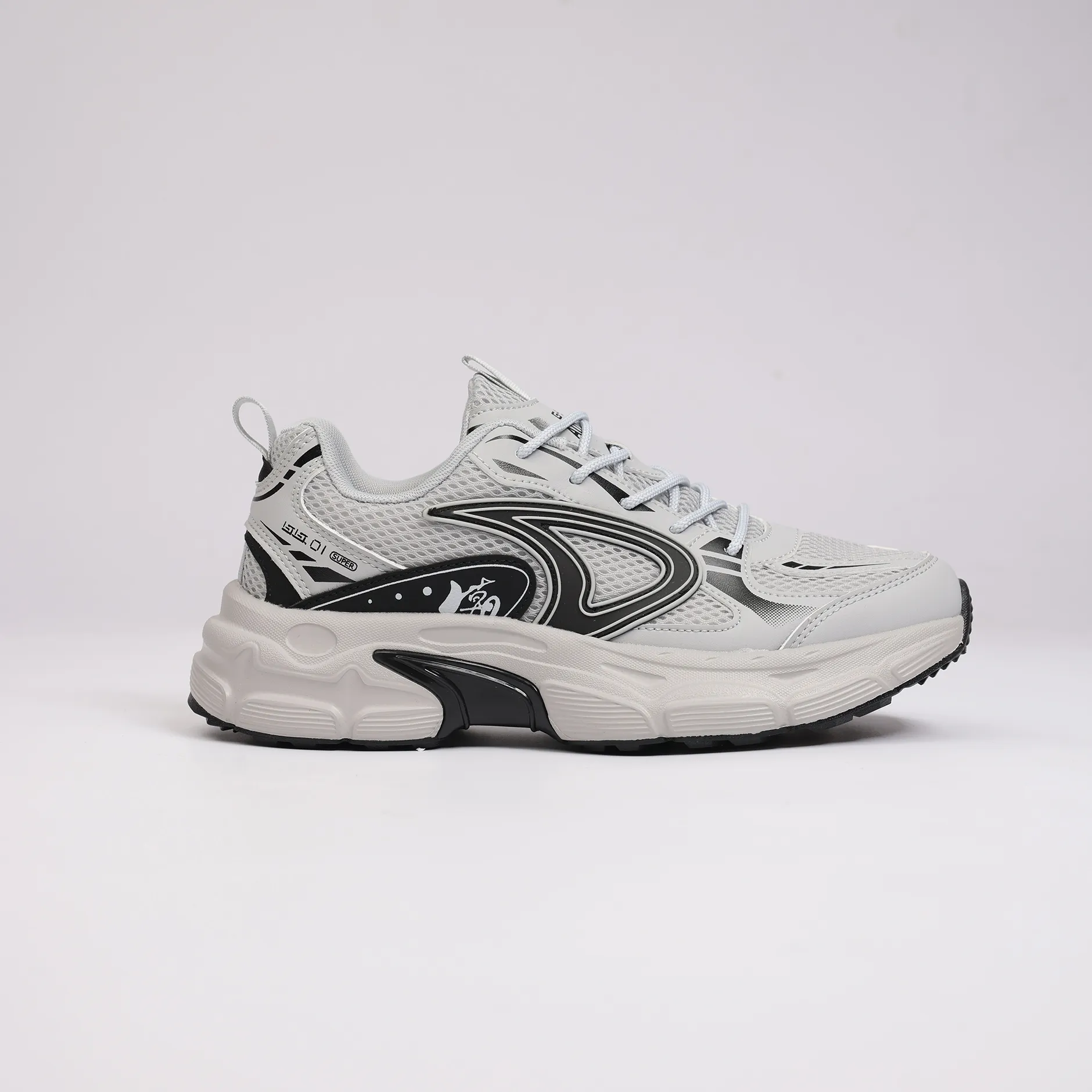 La GSpeed TrailNova 01 – Ice Steel combine une palette claire et moderne avec la performance d’une semelle trail volumineuse. Sa tige en mesh gris blanc assure une respirabilité optimale, tandis que les éléments noirs contrastés soulignent son design dynamique.
